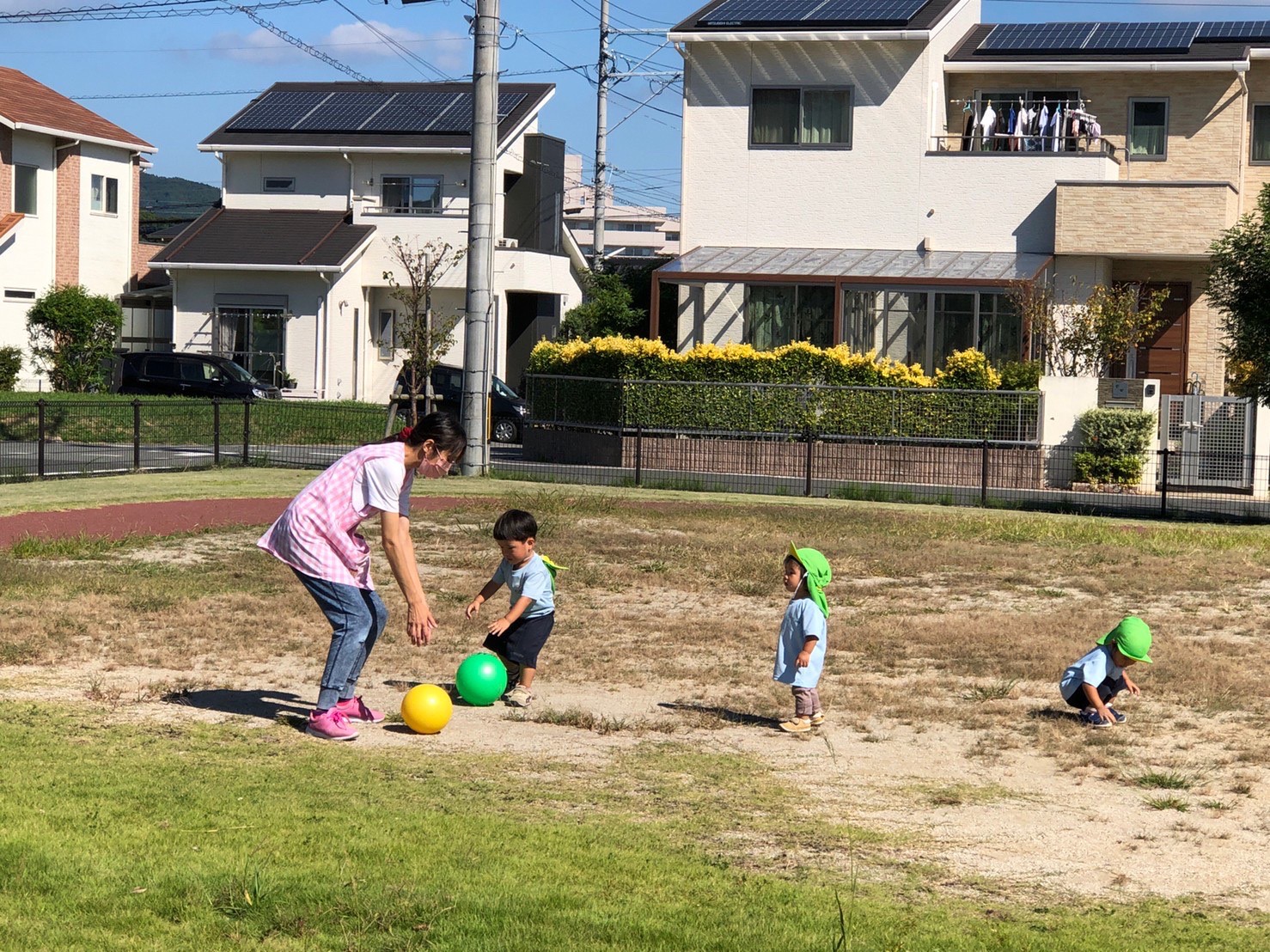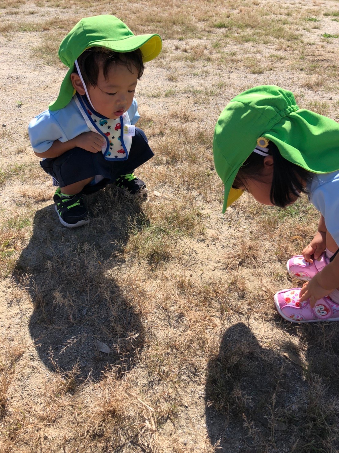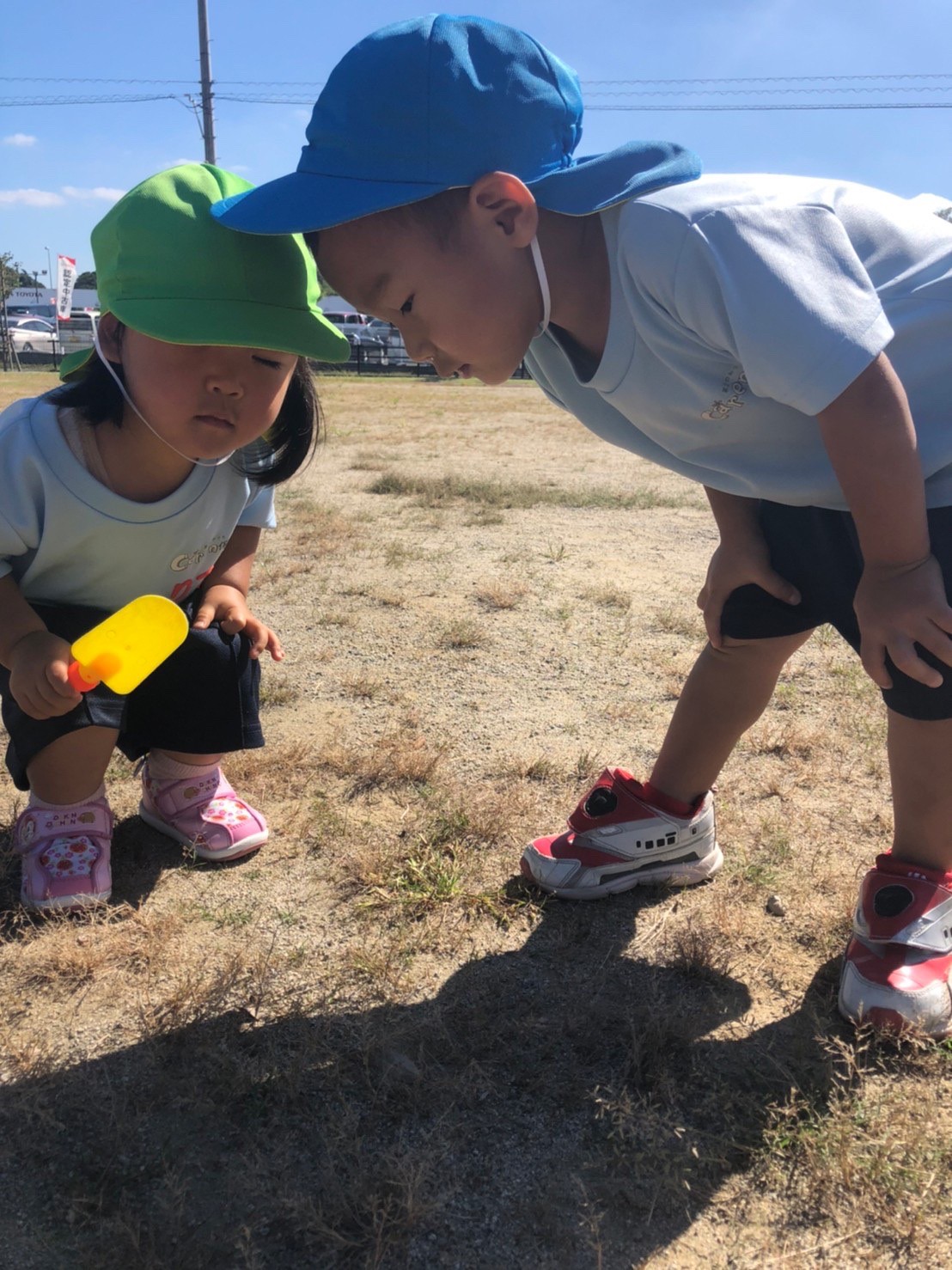 滑り台を滑ってみたり、てんとう虫を 見つけて「先生見て見てー!」と