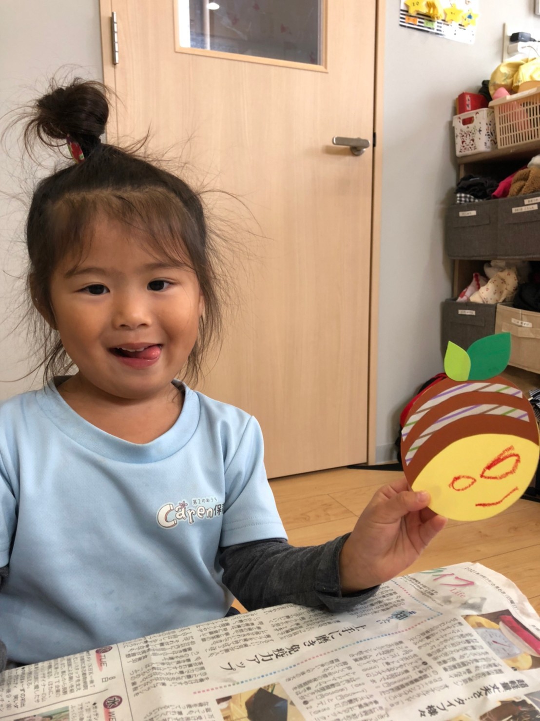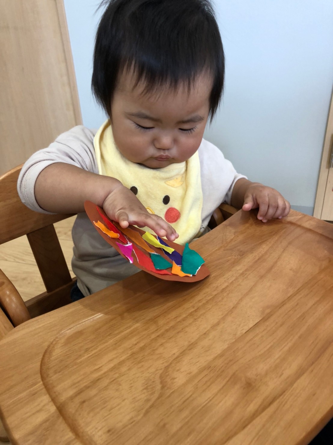 その後は、月🌙の製作をし、折り紙をビリビリと破り、少し切れ目を入れると上手に破れていました😋糊付もベタベタが嫌で洗いたくなる子もいたけど、上手に糊付けをすることができました🤩