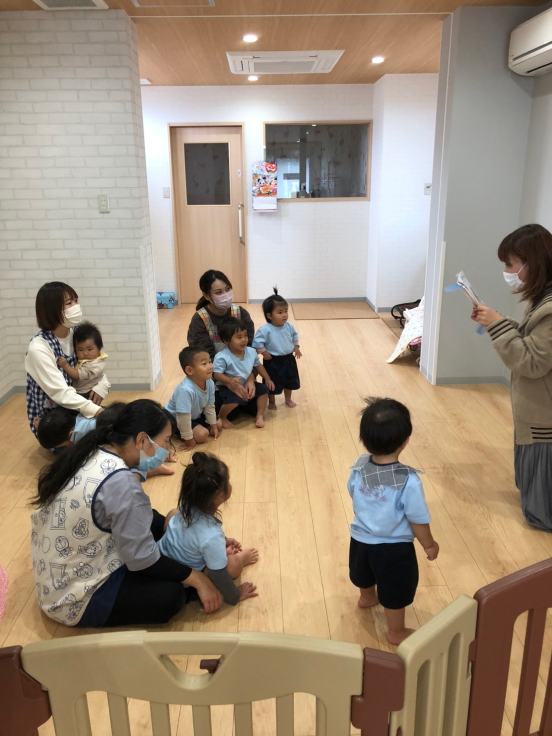きちんと座り、絵本を聞き先生の問いかけに元気に答えていました🧡🧡
