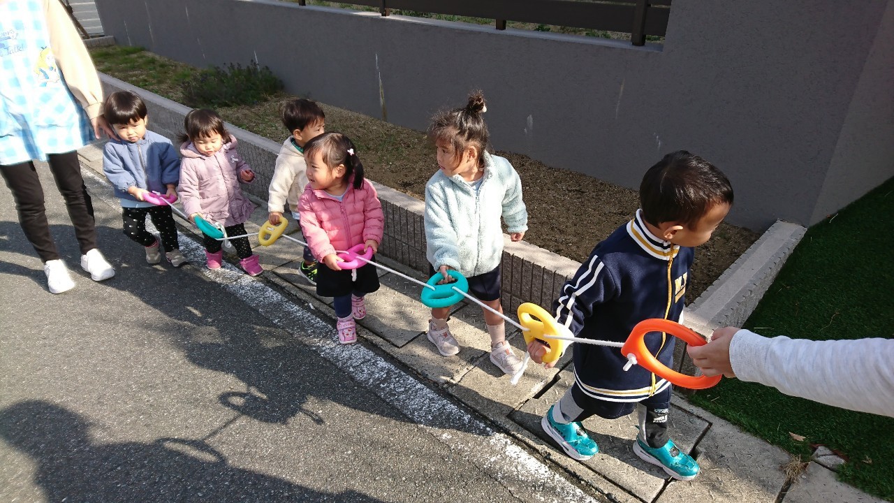 その後は、歩ける子は、むつき公園へ誘導ロープで行き、 しっかりと握り歩くことができていました🥰