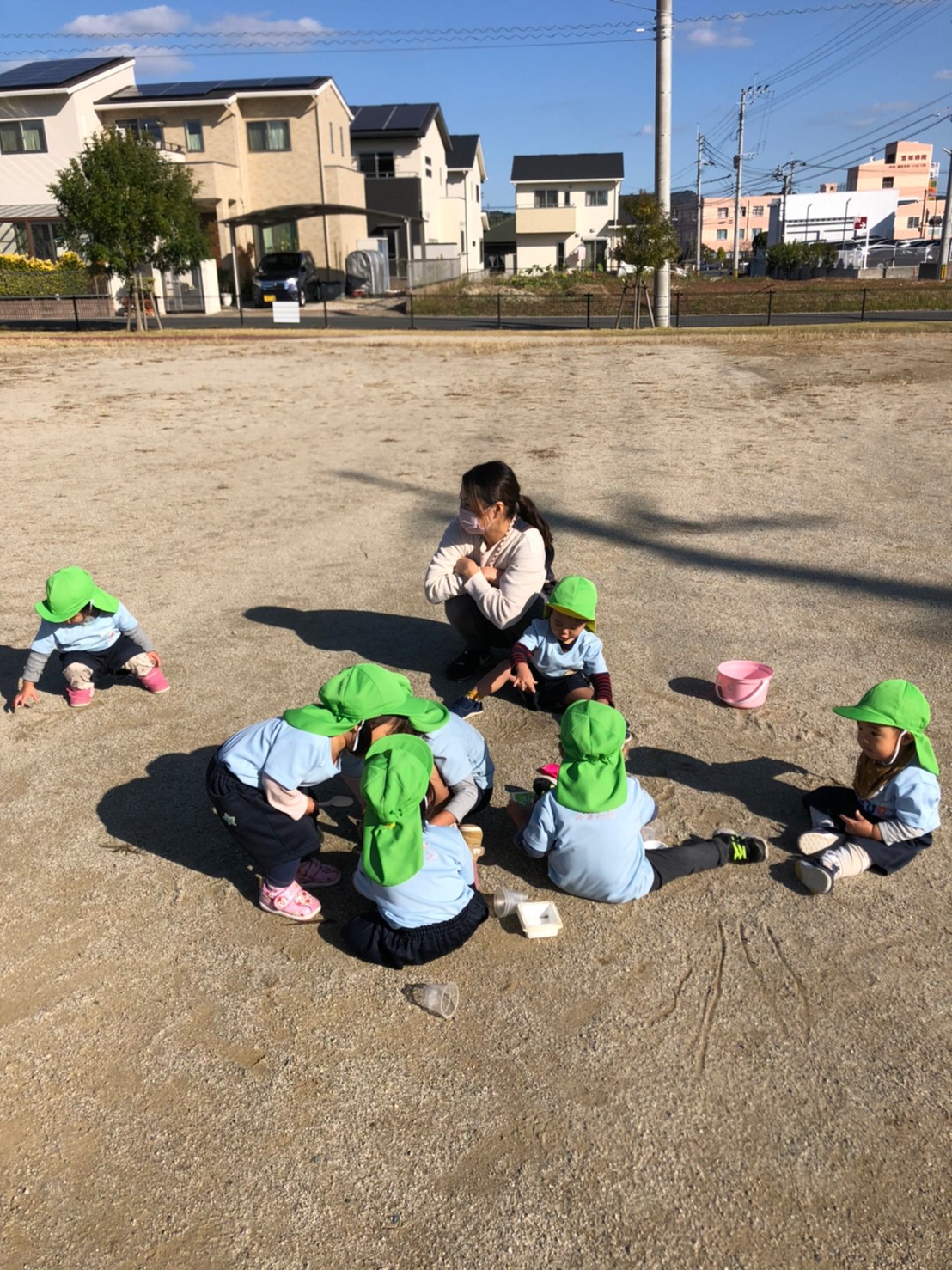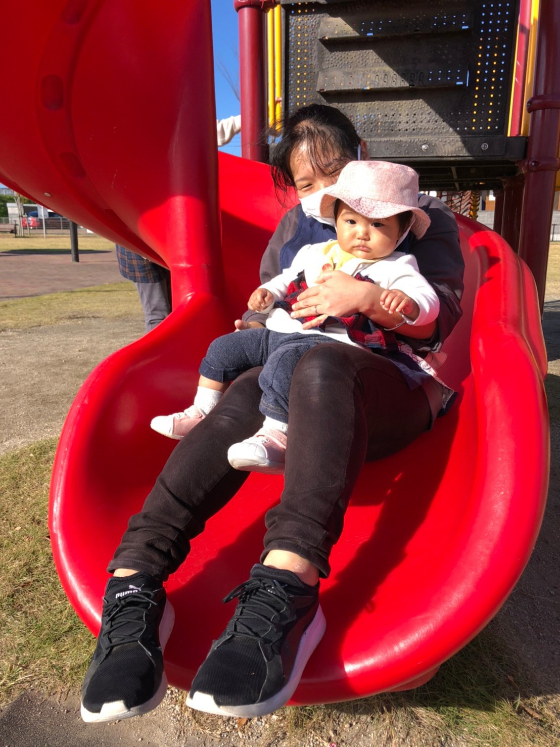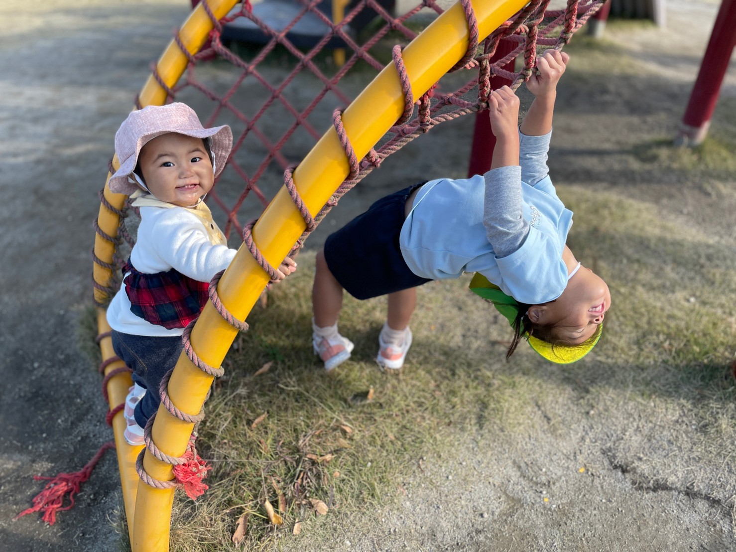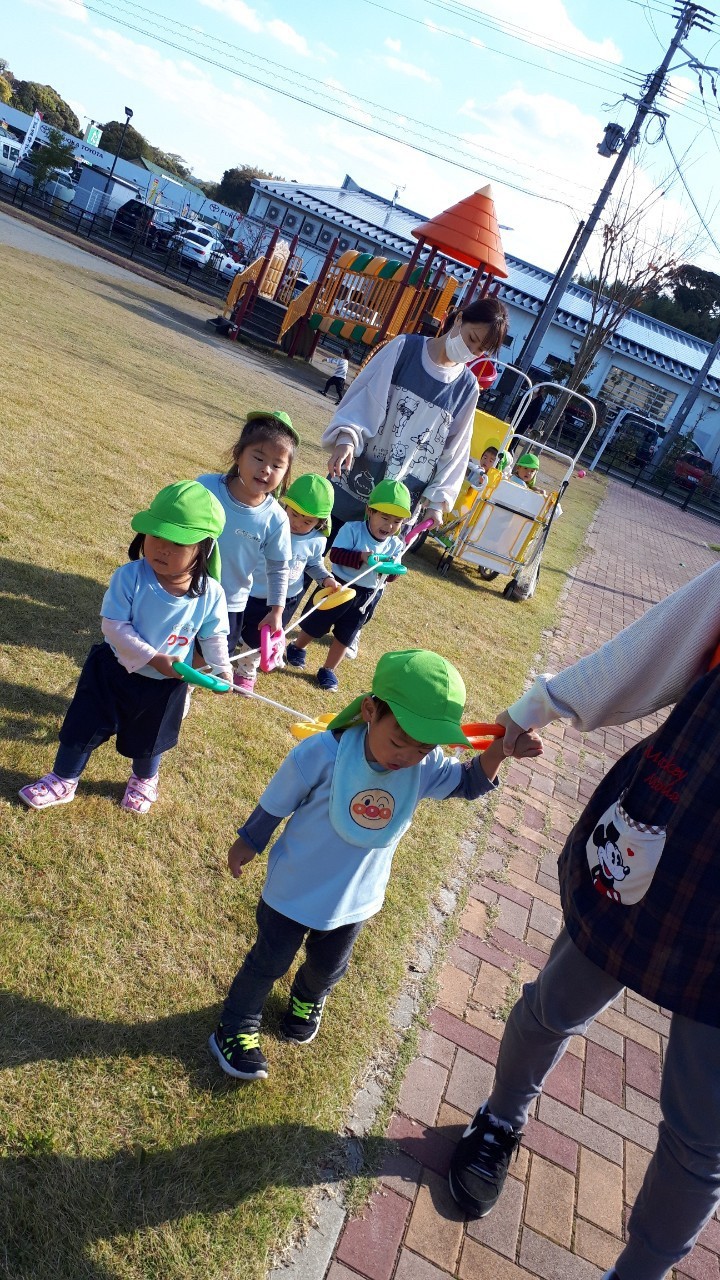 おやつ後は、ふみづき公園へ誘導ロープでお散歩に行き、公園では、何度も遊具に登り、滑り台を滑って楽しく遊んだり、マラソンの練習に来ていた他園のお友達に興味を示し、公園内をたくさん走り回って身体を動かして楽しんでいました✨🥰保育者の『よーいどん』の声かけに嬉しそうな表情をたくさん浮かべていました✨