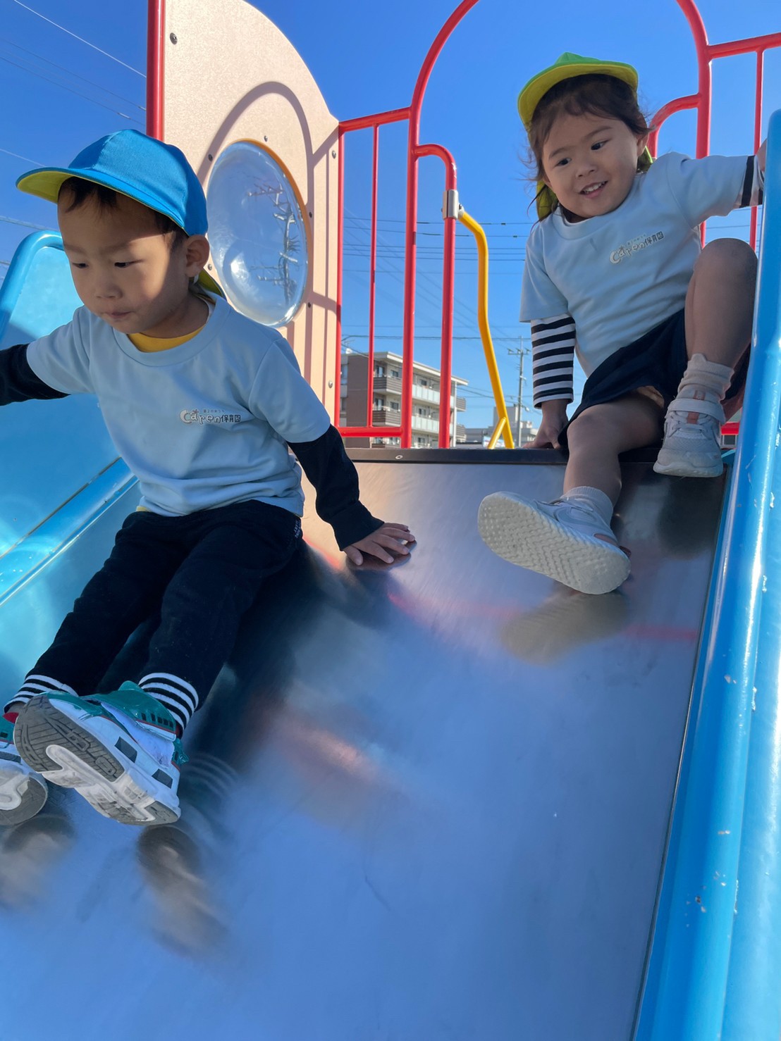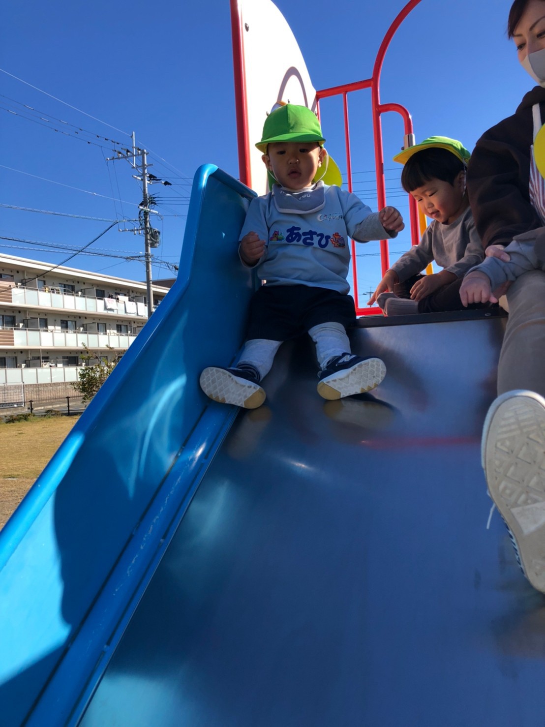 季節の歌では、『きのこのうた』の音楽がかかるのを楽しみにしている姿もあったりました🍄戸外遊びでは誘導ロープでさつき公園に行き、滑り台を果敢に何度も滑ったり、お友達と追いかけっこをしたりと公園内をたくさん走り回って楽しく遊んびました(^^♪