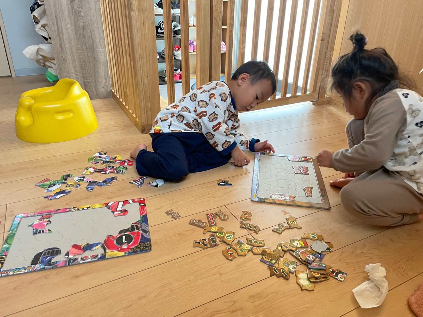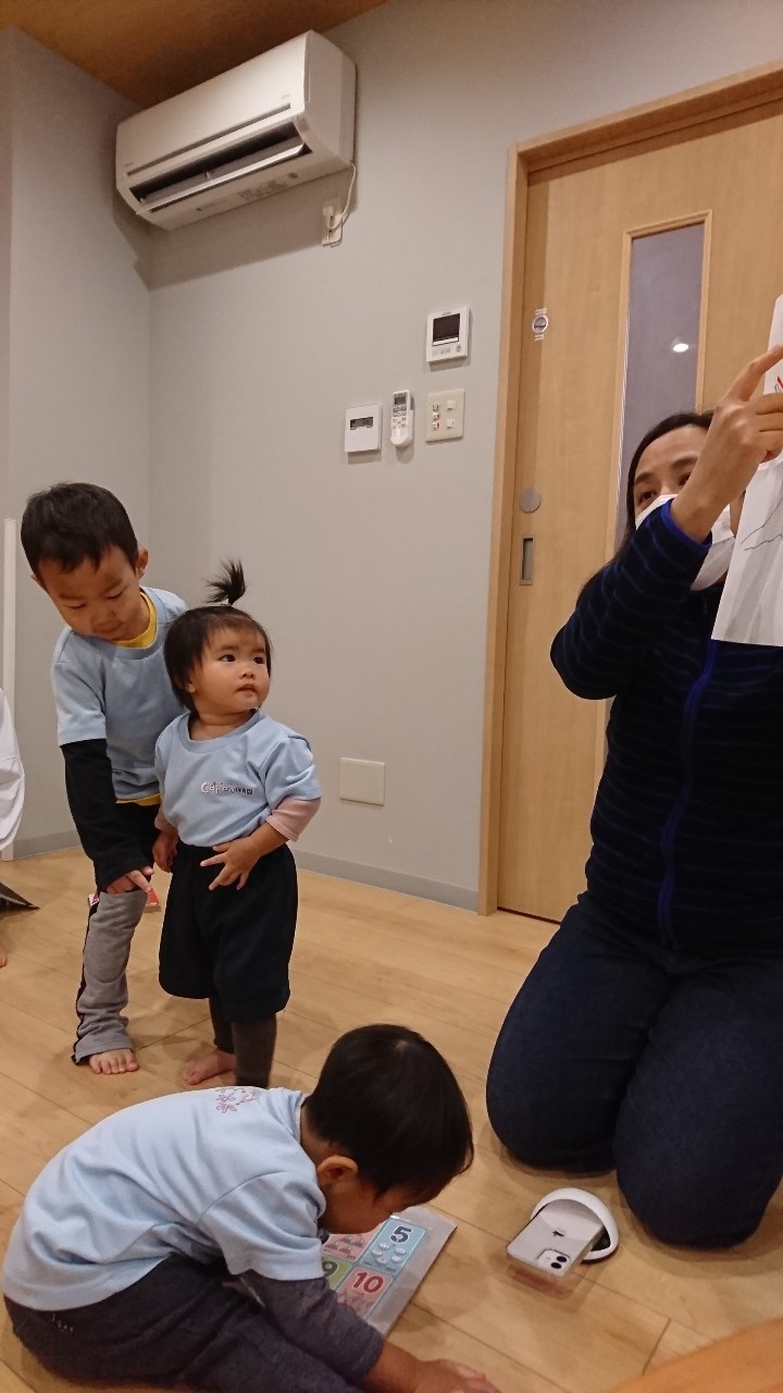 英語レッスンに参加しました💛 音楽に合わせて手を叩いてリズムをとったり、アルファベット等のカードを興味津々で見てました✨🥰その後は、きのこの歌の踊りをしたり、バランス遊具等で身体を動かしながら遊びました🍄