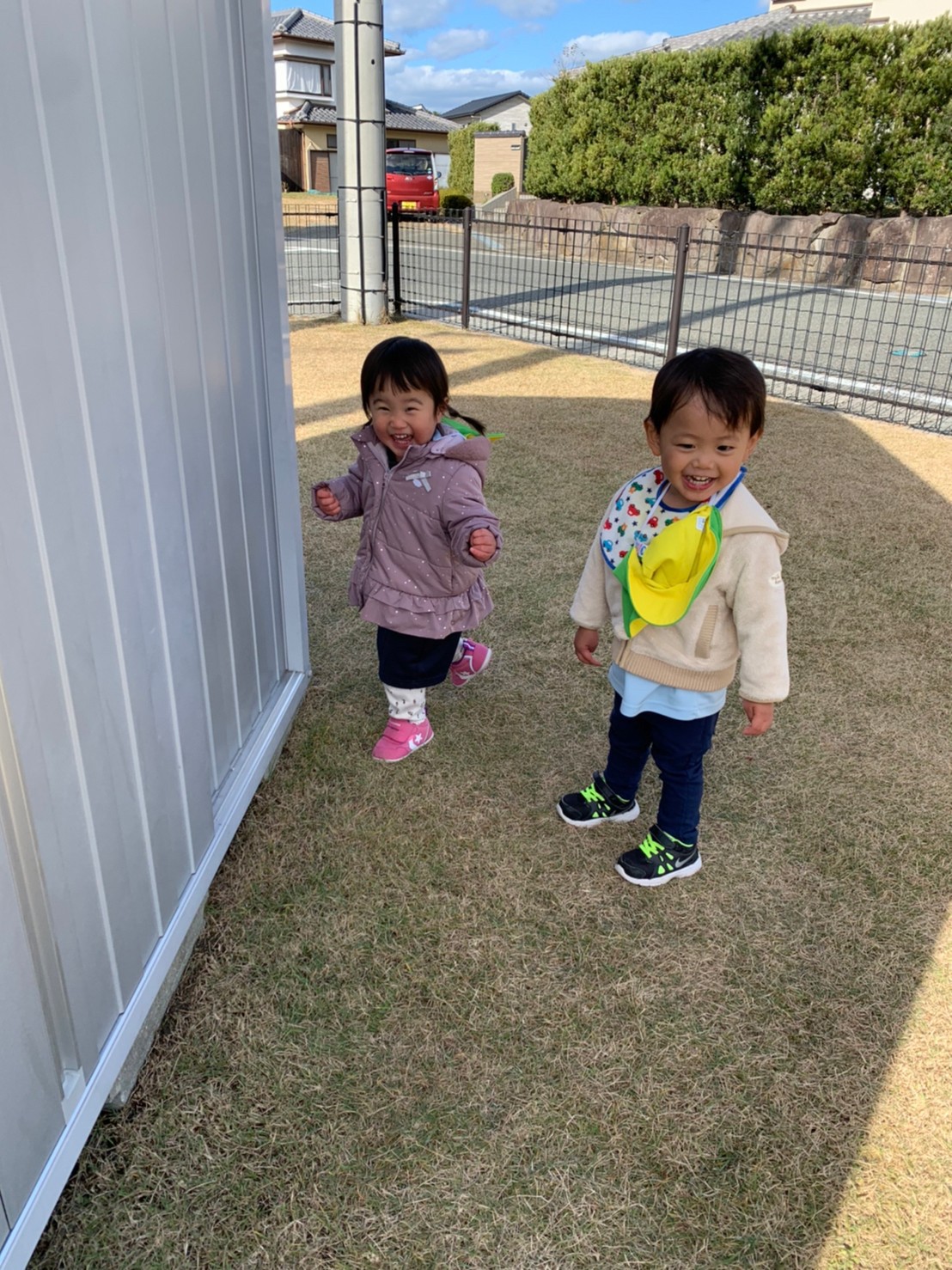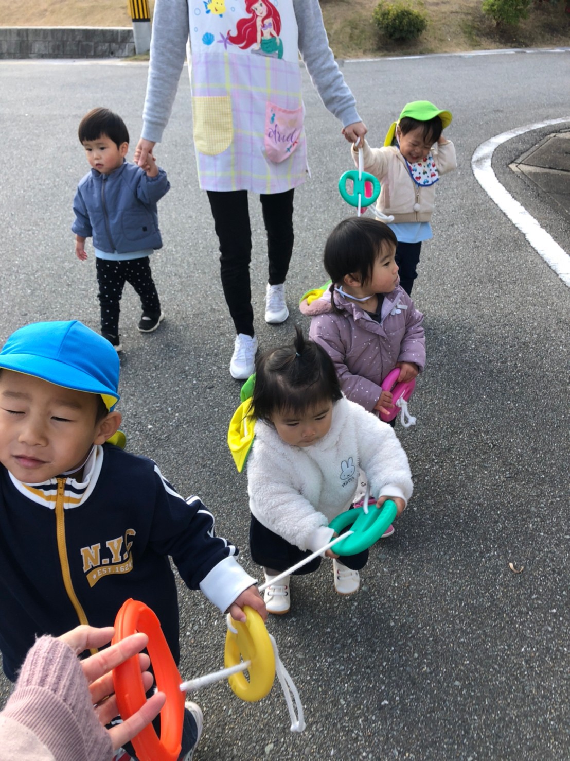 お外行きたいーの声があったので、歩ける子供たちを連れて誘導ロープでむつき公園へ遊びに出かけました!