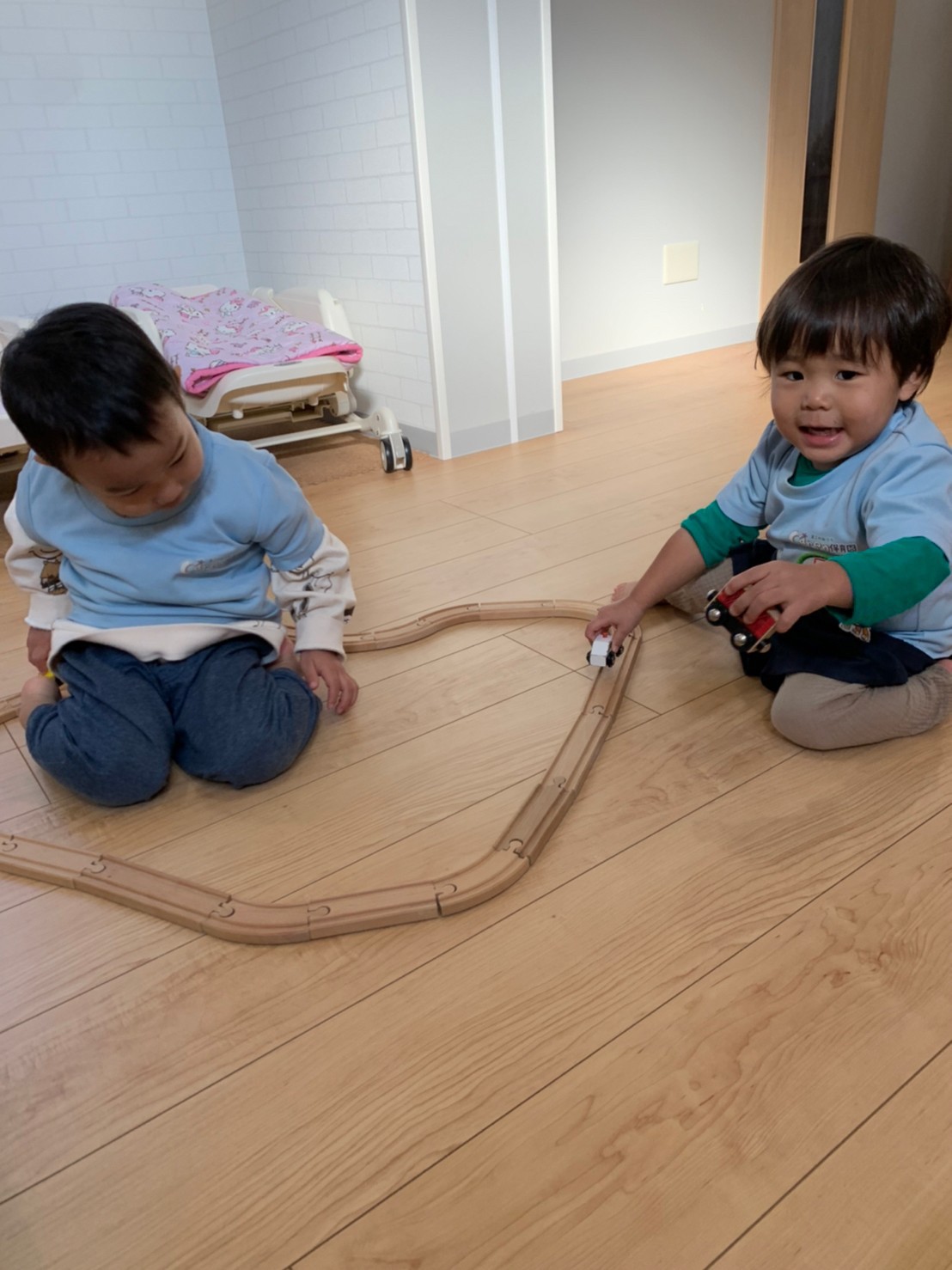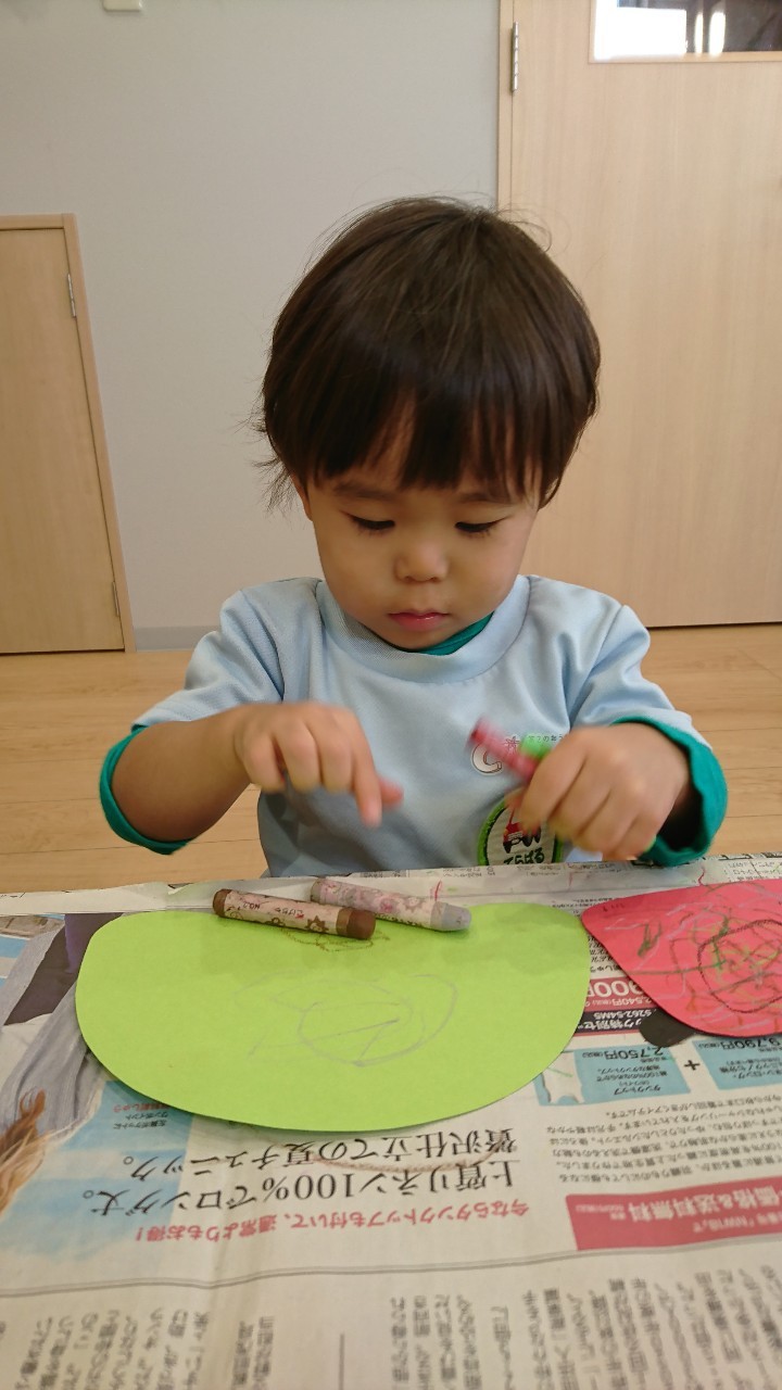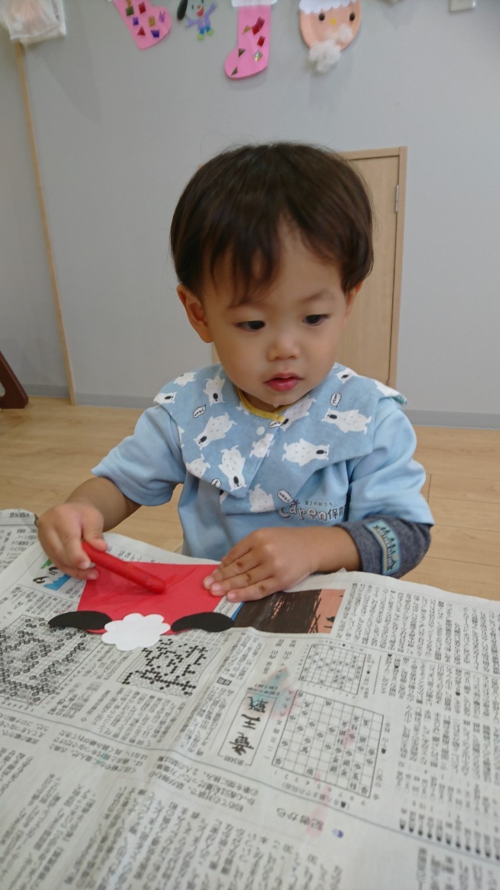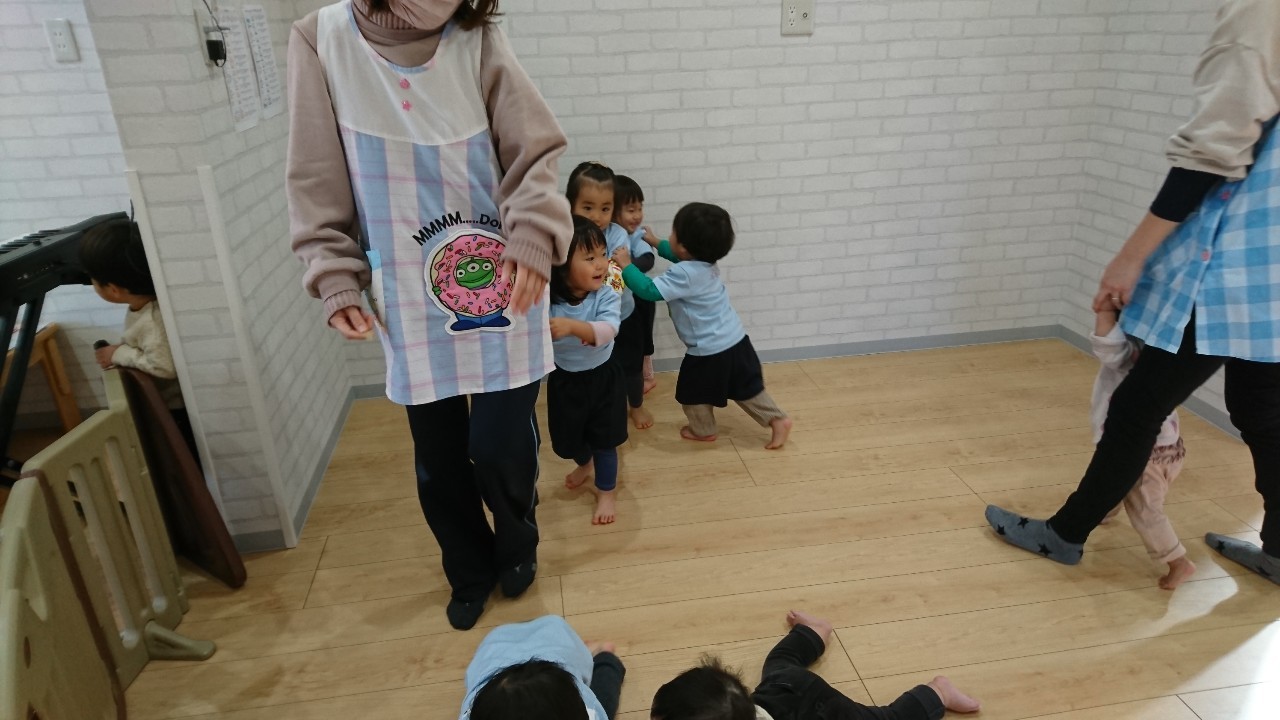 今日は、1月の制作をしました🥴獅子舞の顔とからだにクレヨンで描いたり、折り紙をちぎり糊付けをしたりと手についた糊に嫌がる様子もなく出来上がりました。 その後はゆっくりと室内で電車のおもちゃやブロックで遊び『電車がしたいー!』の声があったのでお片付けを済ませて、リズム遊びを遊びをしました。電車になってお友達と繋がったりカエルになってジャンプをしたりと、音楽に合わせた体を動かし楽しく過ごせました🥰✨
