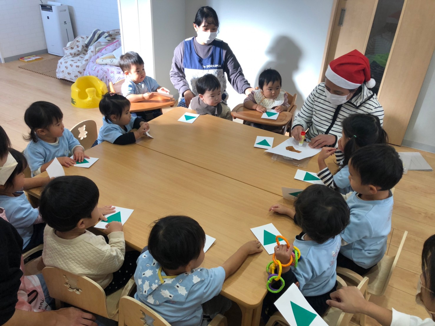 朝の会の後に英語教室に参加をしました! 音楽が流れると歌を歌ったり 踊ったりして楽しむ姿が見られ、 英語の先生と一緒にクリスマスの カード作りました🥰