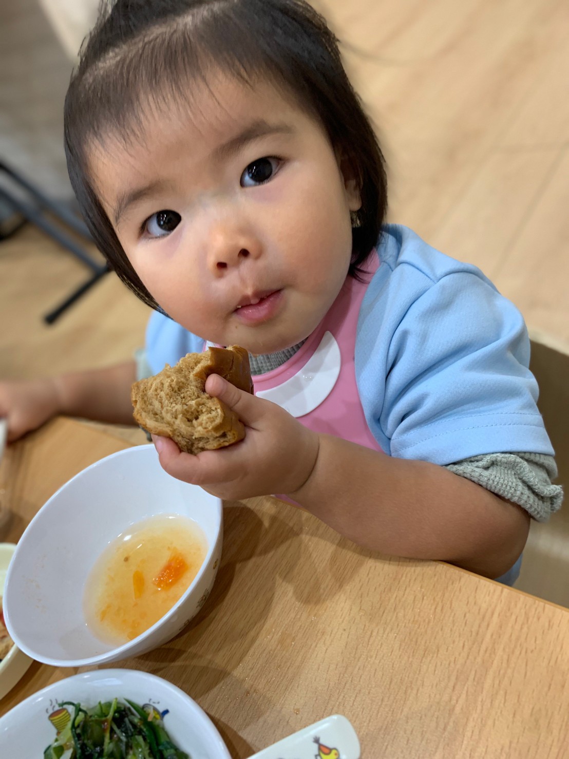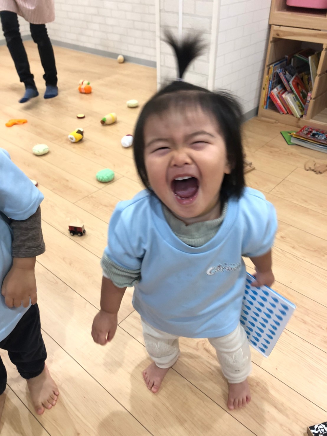 朝の会では、きちんと座り名前を呼ばれると照れながらも手をあげて参加することができていました🥰