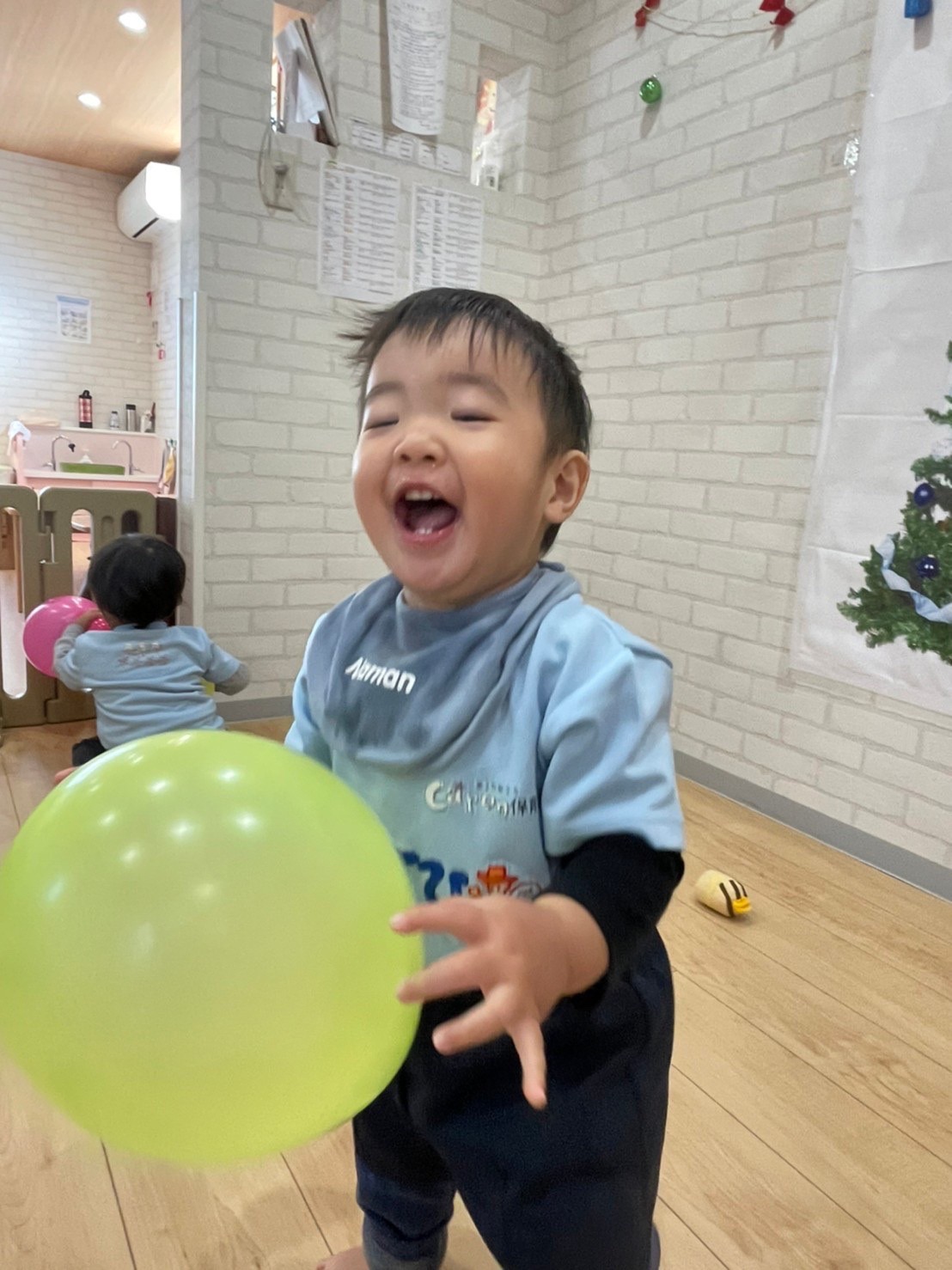 朝の会での絵本読みでは、集中して話を聞いていました🥰お名前呼びも一人一人しっかり手を挙げて応える事ができました。室内遊びで、保育者が風船を膨らませると大興奮で遊んでいました✨🌻その後、クリスマスツリーのお絵描きをして🌻沢山の色を使い、それぞれ自由に描いたり、シールを貼りをしました🥴普段使わないラインテープを出すと興味津々で何度も貼りたい!と保育者に声をかけ、長い時間集中して取り組む事ができました🥳室内での活動が長いので、こまめな換気と水分補給に留意します。