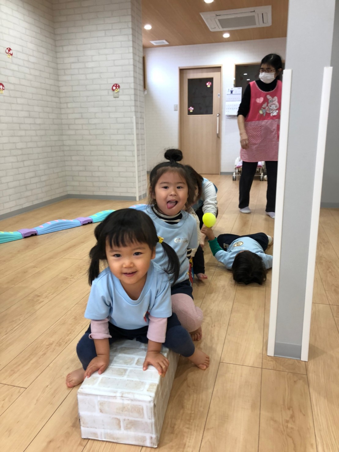 平均台など用いて、身体を十分に動かし、友達や保育者と室内でものびのびと楽しむ姿が見られました🥳Caren保育園ふくつ