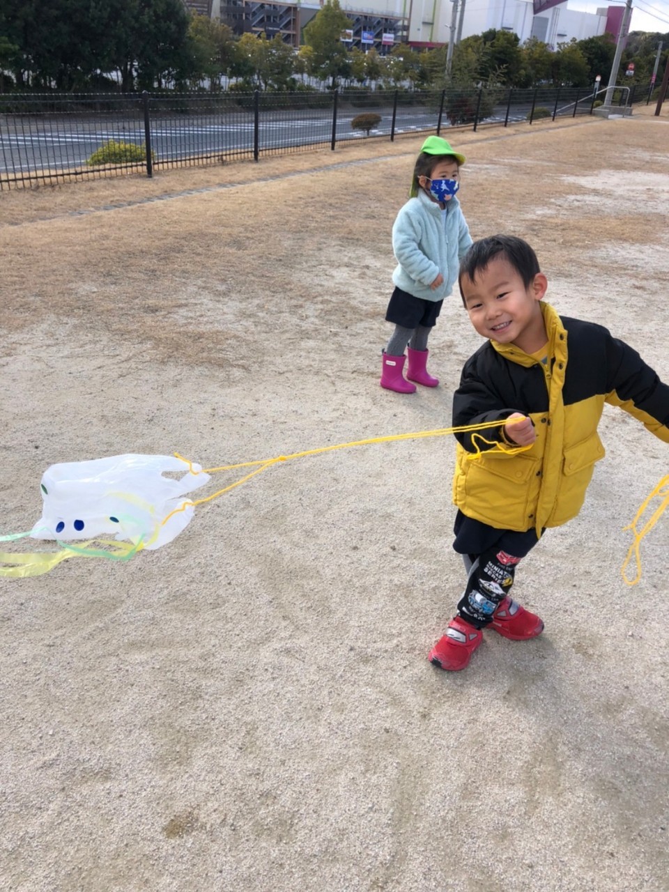 その後は、先日作った凧を持ってむつき公園へ😆