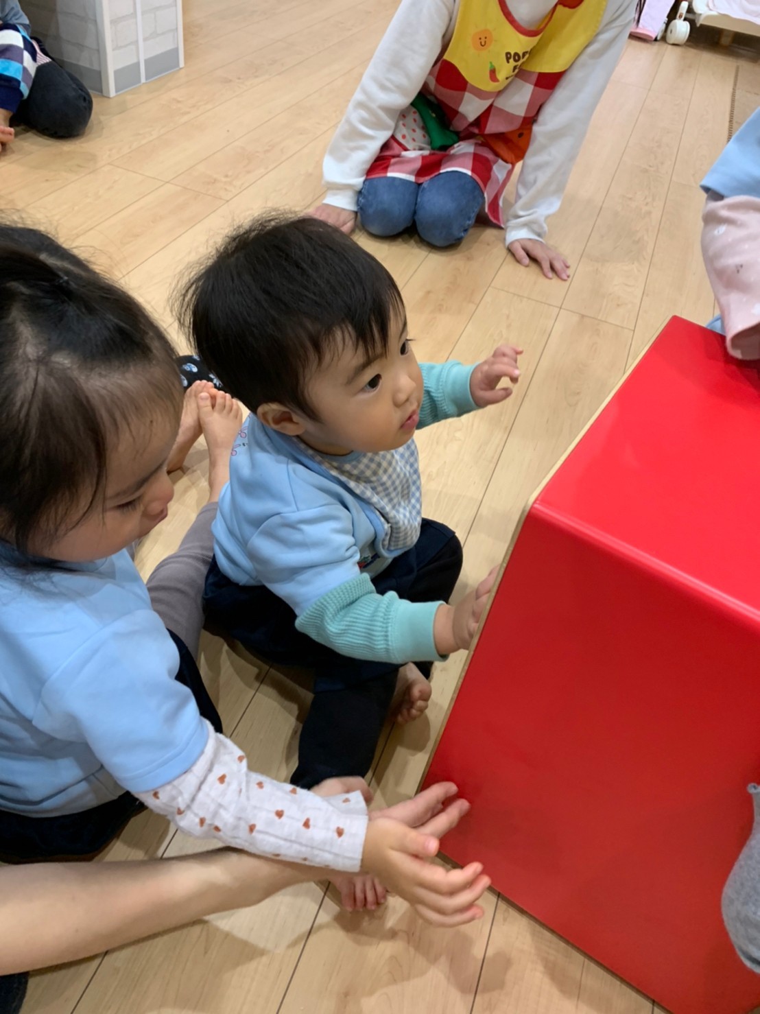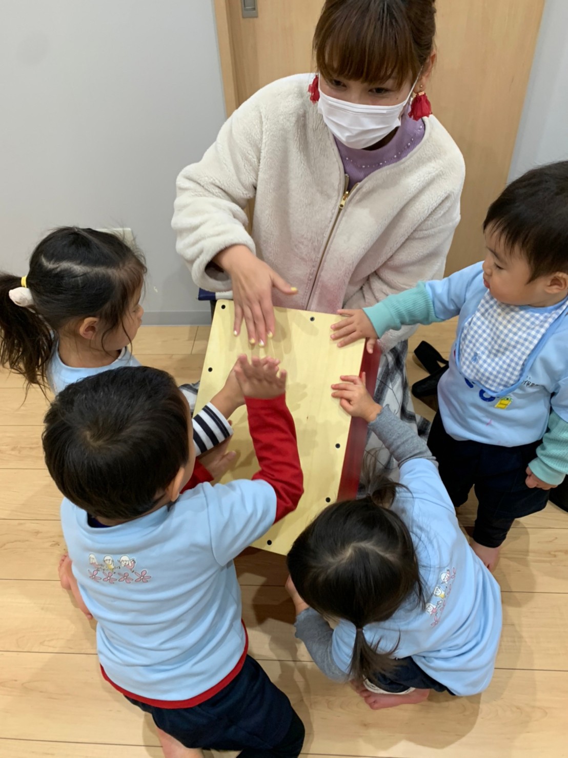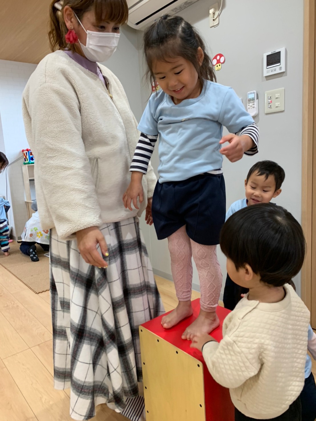 太鼓の上に乗って叩いたり、太鼓のリズムに合わせて『パプリカ』を踊ったり『もう、一回パプリカして〰️😆』とエンドレスで楽しむ子供達でした💓