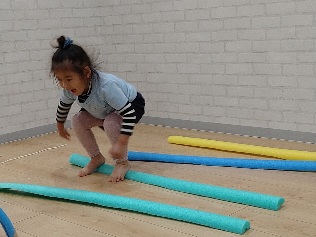 スティックの上を上手に保育者と一緒に渡り上手にバランスも取っていましたよ♪