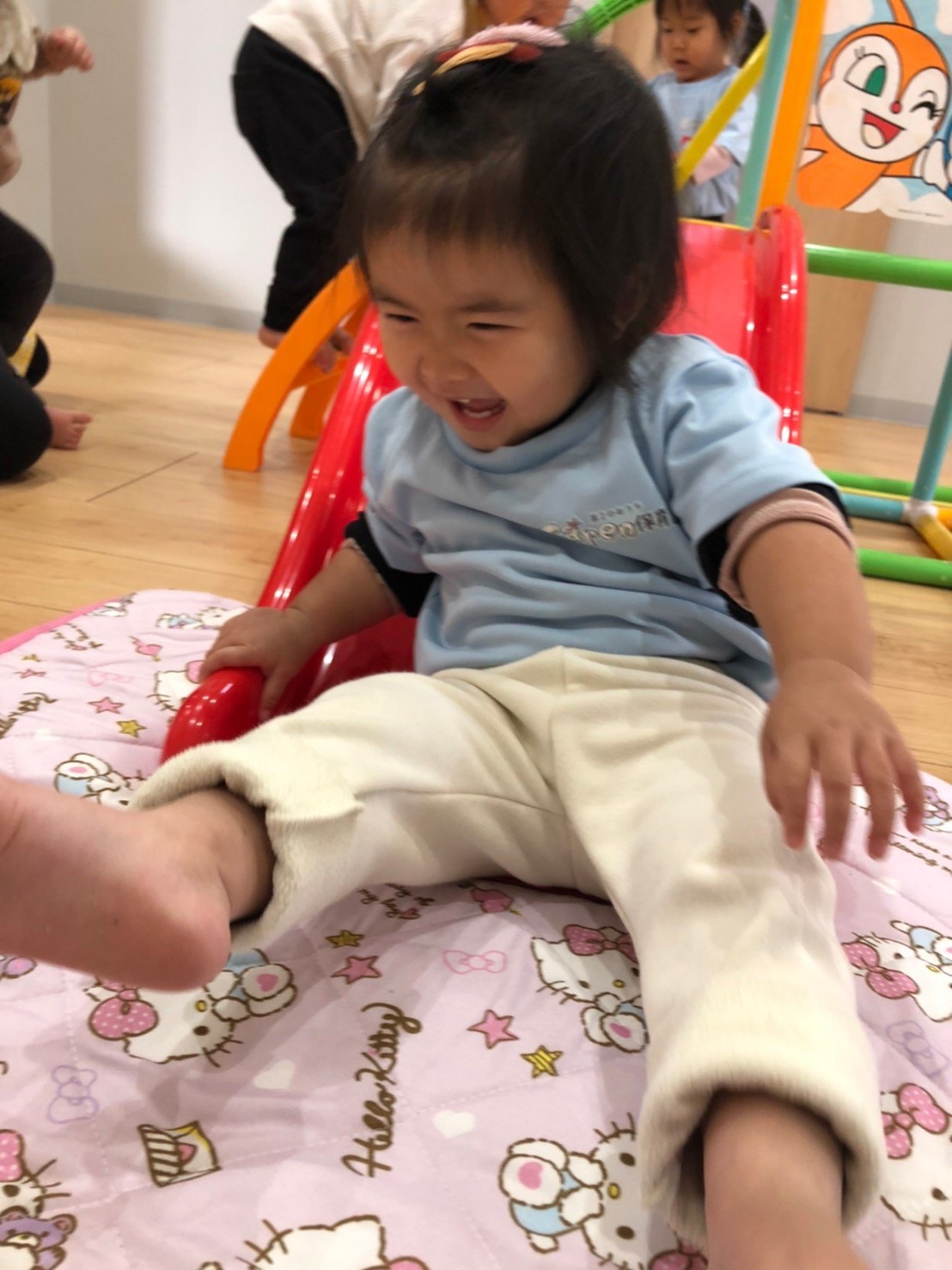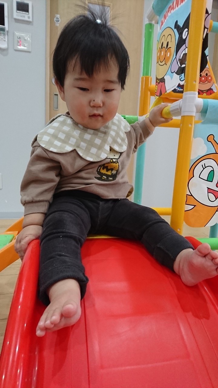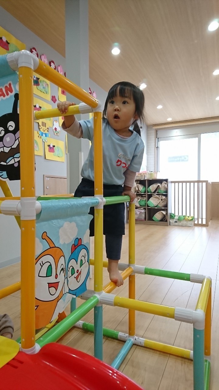 0歳児さんと鼻水が出ている子は、室内で滑り台つきのジャングルジムで遊びましたよ😍