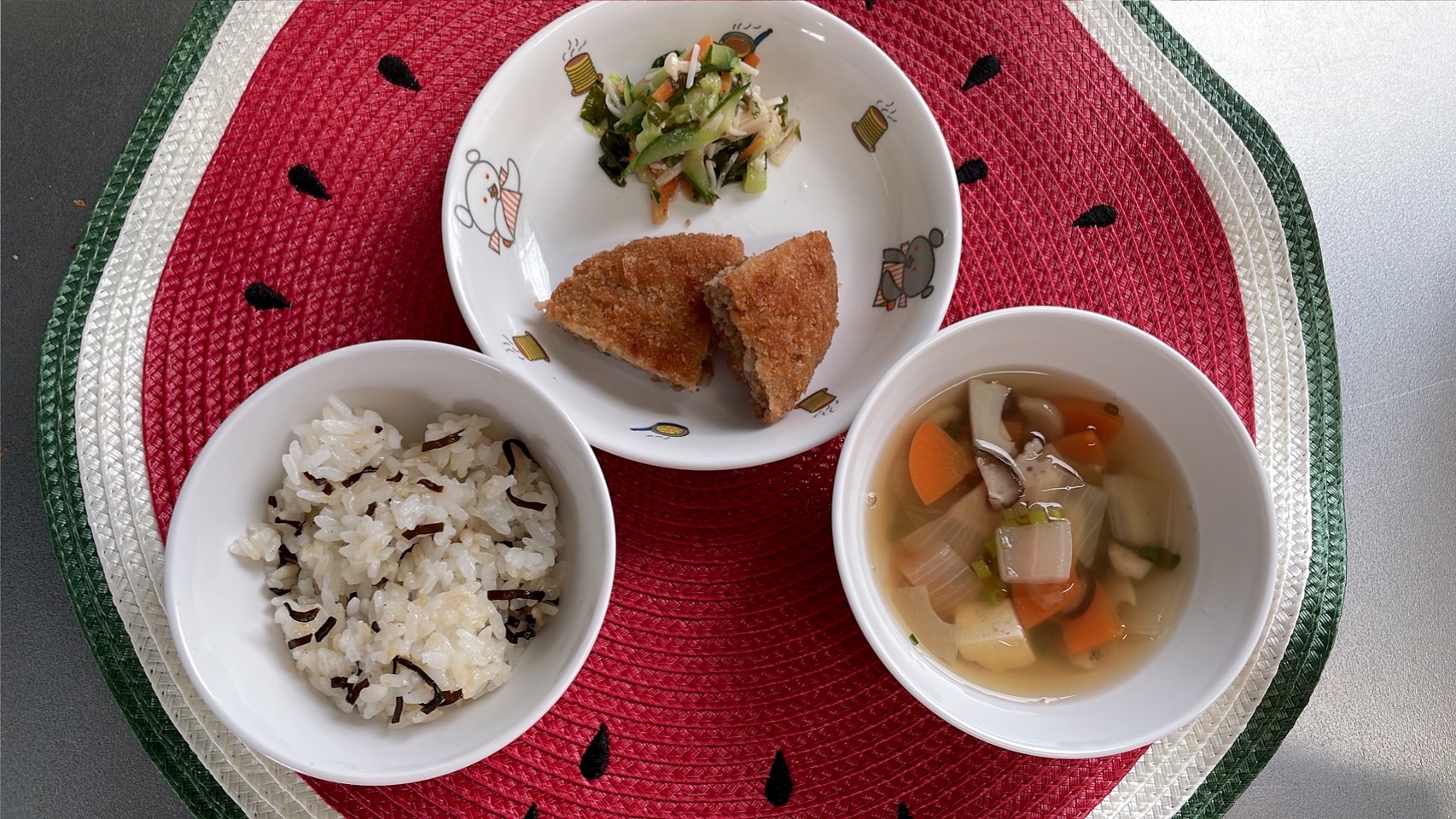 順番で滑り台を滑り、楽しく過ごしましたよ😉【ふくつ園の今日の給食です】