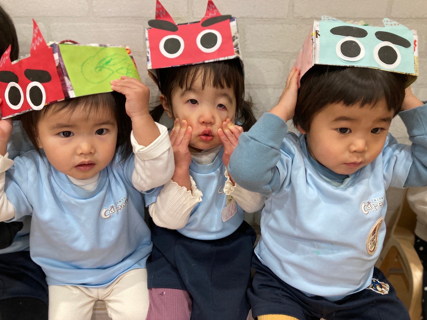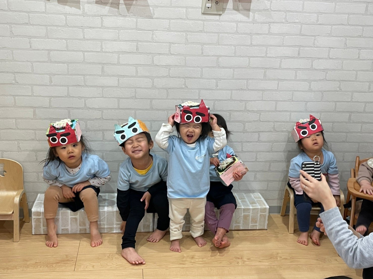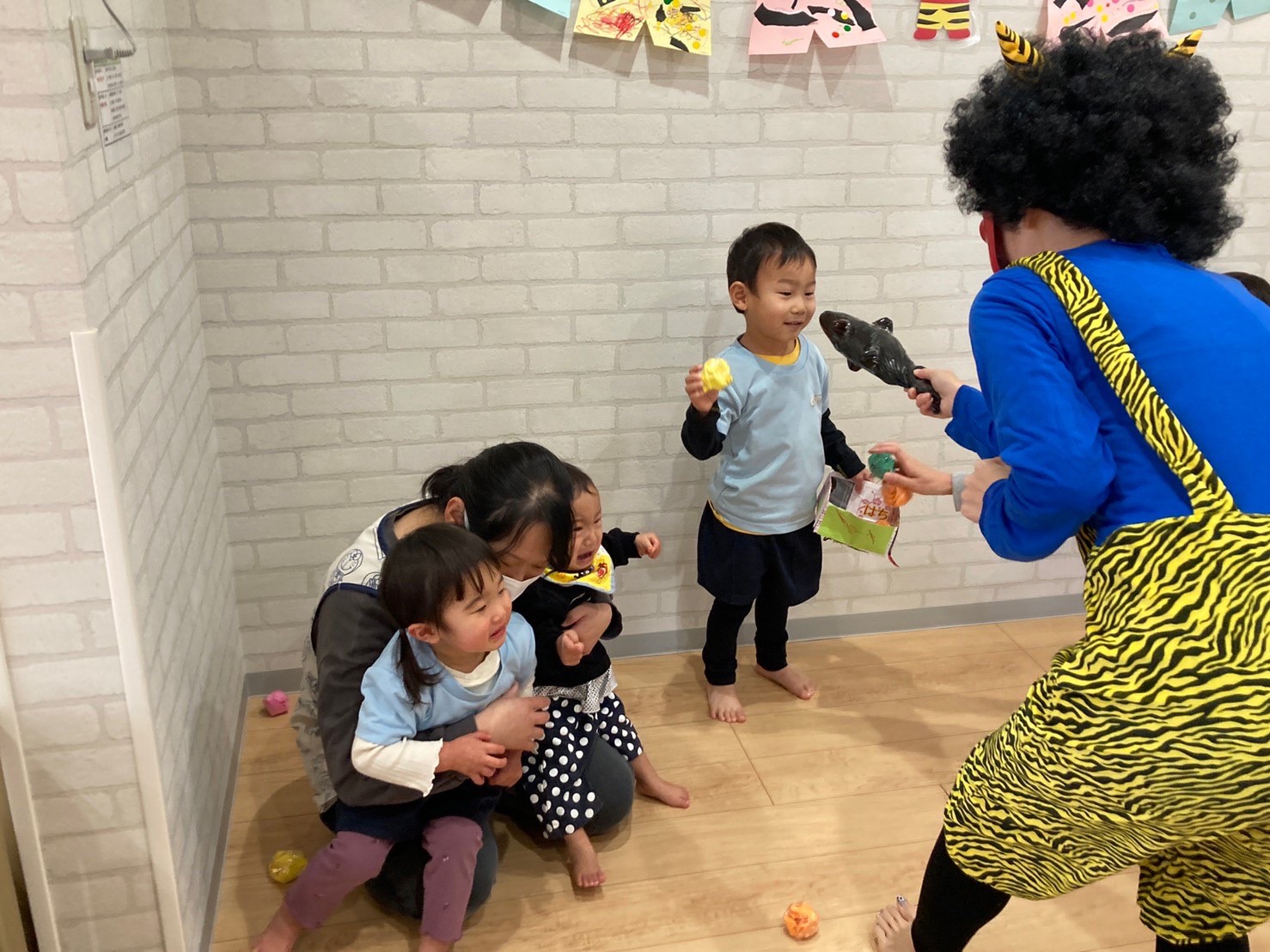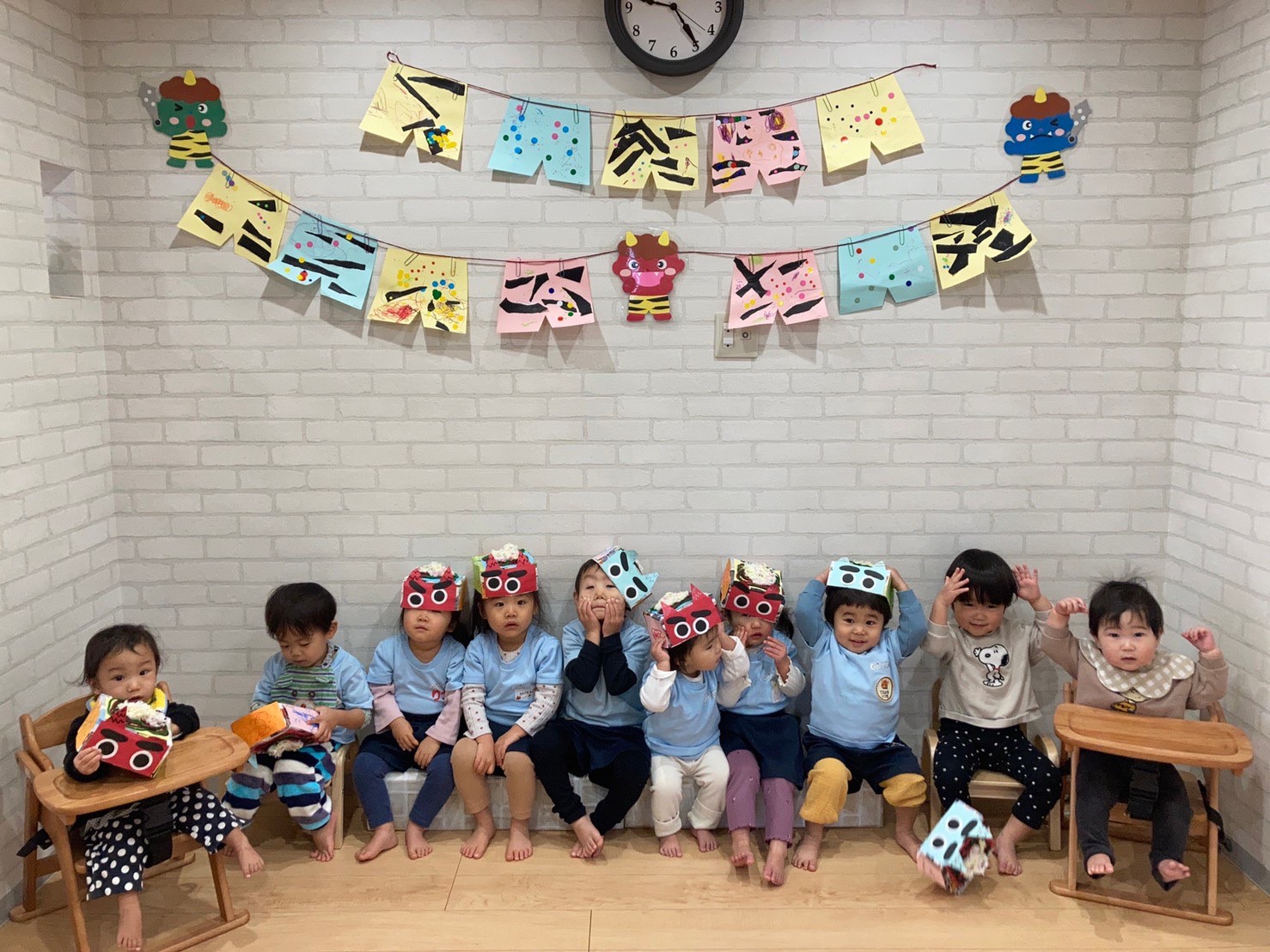 子ども達は一瞬で泣き出してしまいましたが、2歳児の勇気あるお兄ちゃんが涙も見せずに鬼を退治してくれましたよ🤩💕