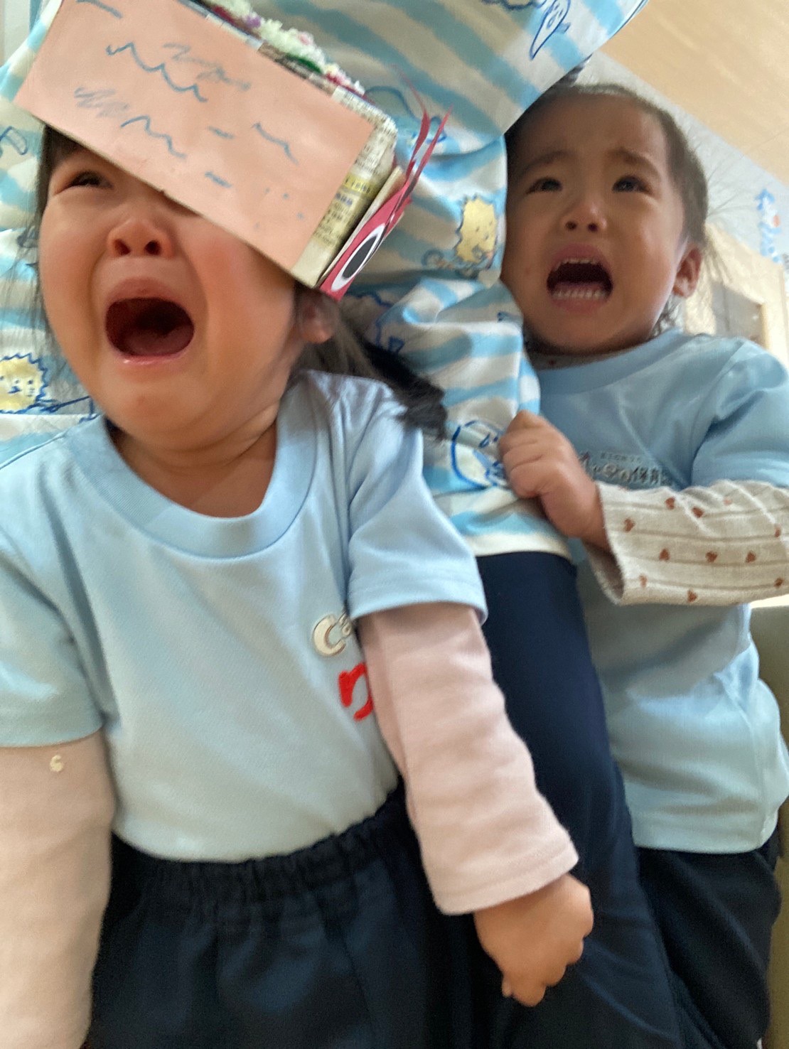 鬼のお面を被り楽しんでいるところに、鬼さんが登場し😱💨💨