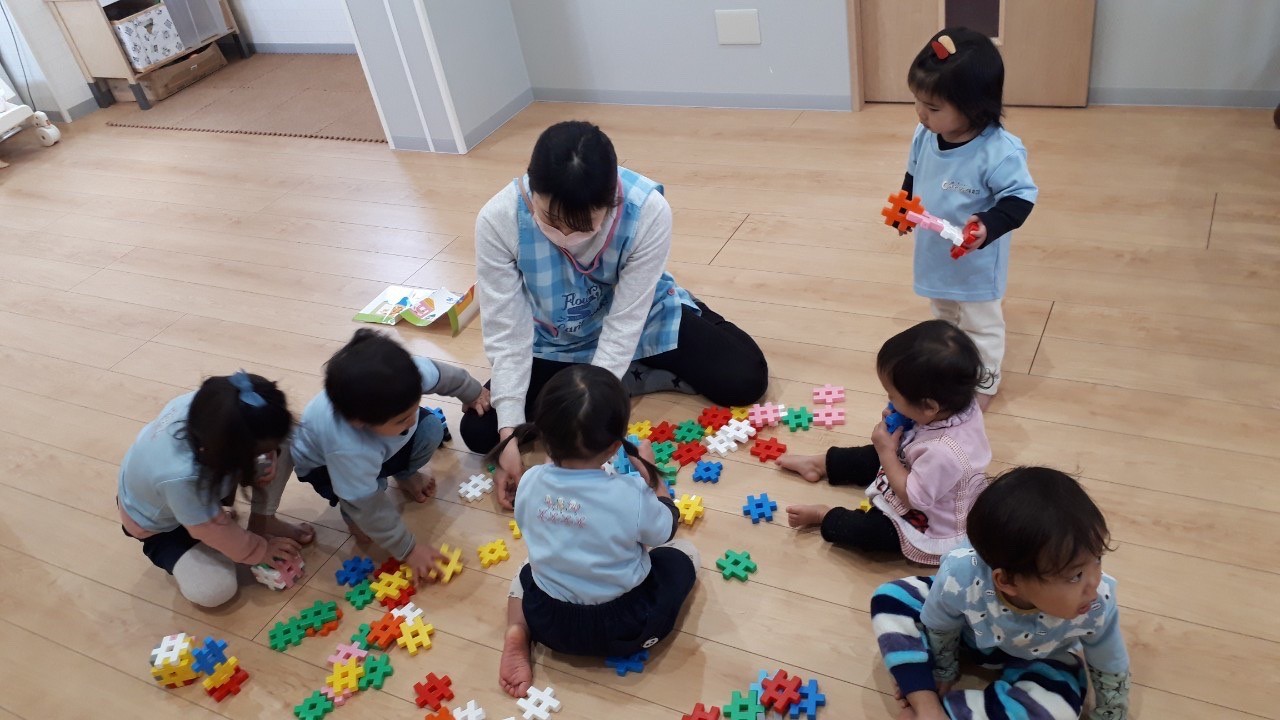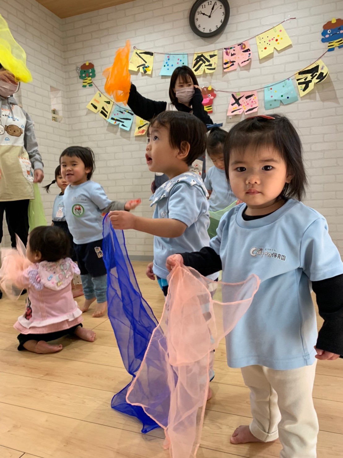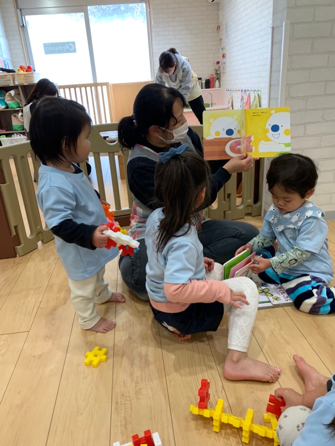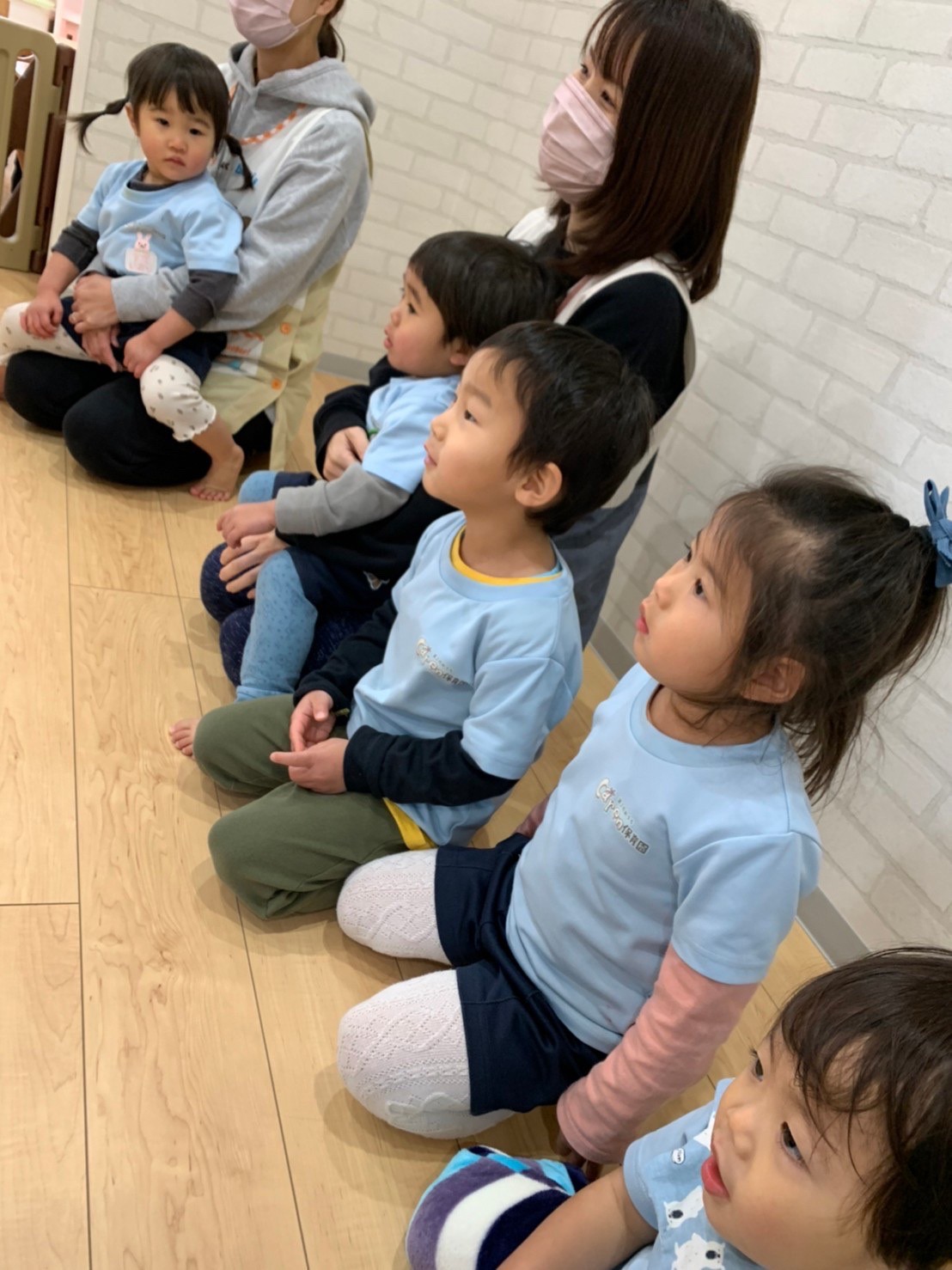 大好きな『はらぺこあおむし』🐛の絵本が始まると、ニコニコ笑顔で一緒に歌っていましたよ💕先生のお膝の上に乗り、『バスに乗って』の触れ合い遊びもしました🚌✨たくさん身体を揺らしたくさん笑っていた子供たちでした🤣🎶