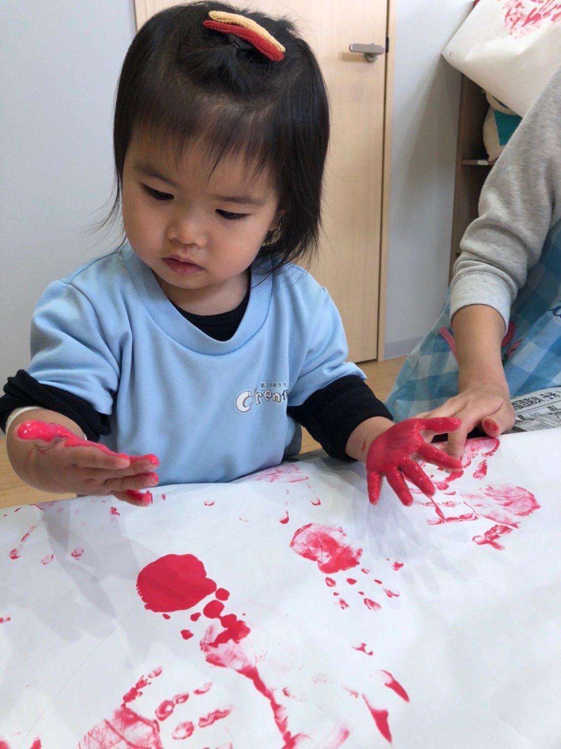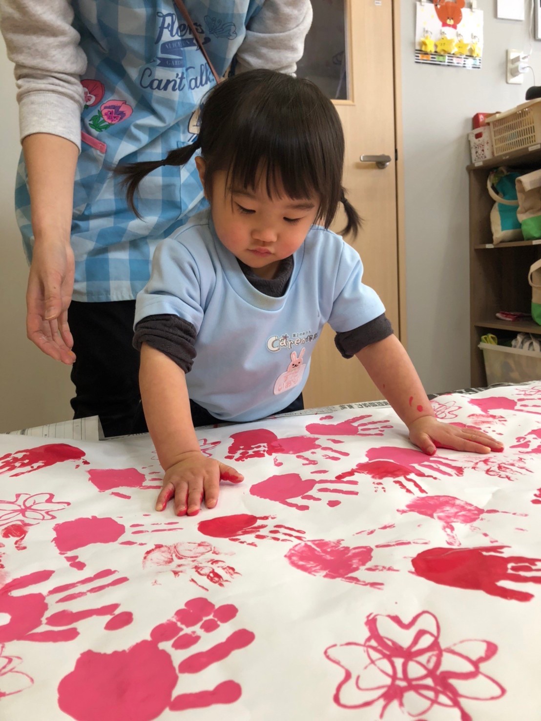手形の感触が楽しく模造紙にたくさんペタペタとスタンプしていました😍💗💗