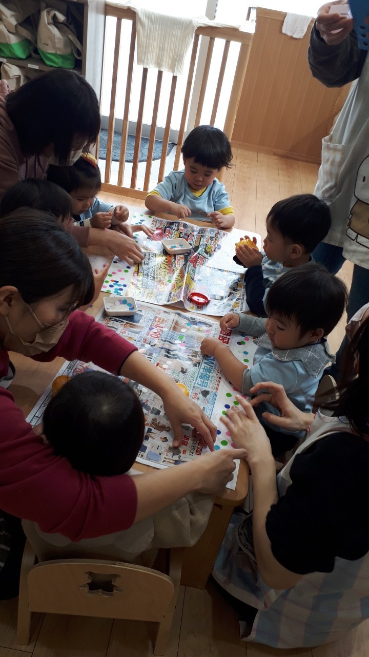 ペタペタと糊の感触を楽しみ、みんな集中して取り組んでいました😆