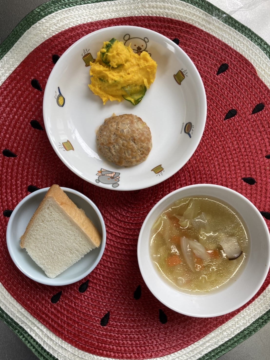 お友だちとキャーキャー言いながらかくれんぼをしたり、おままごとをして、楽しく過ごしました😊【ふくつ園の今日の給食です】