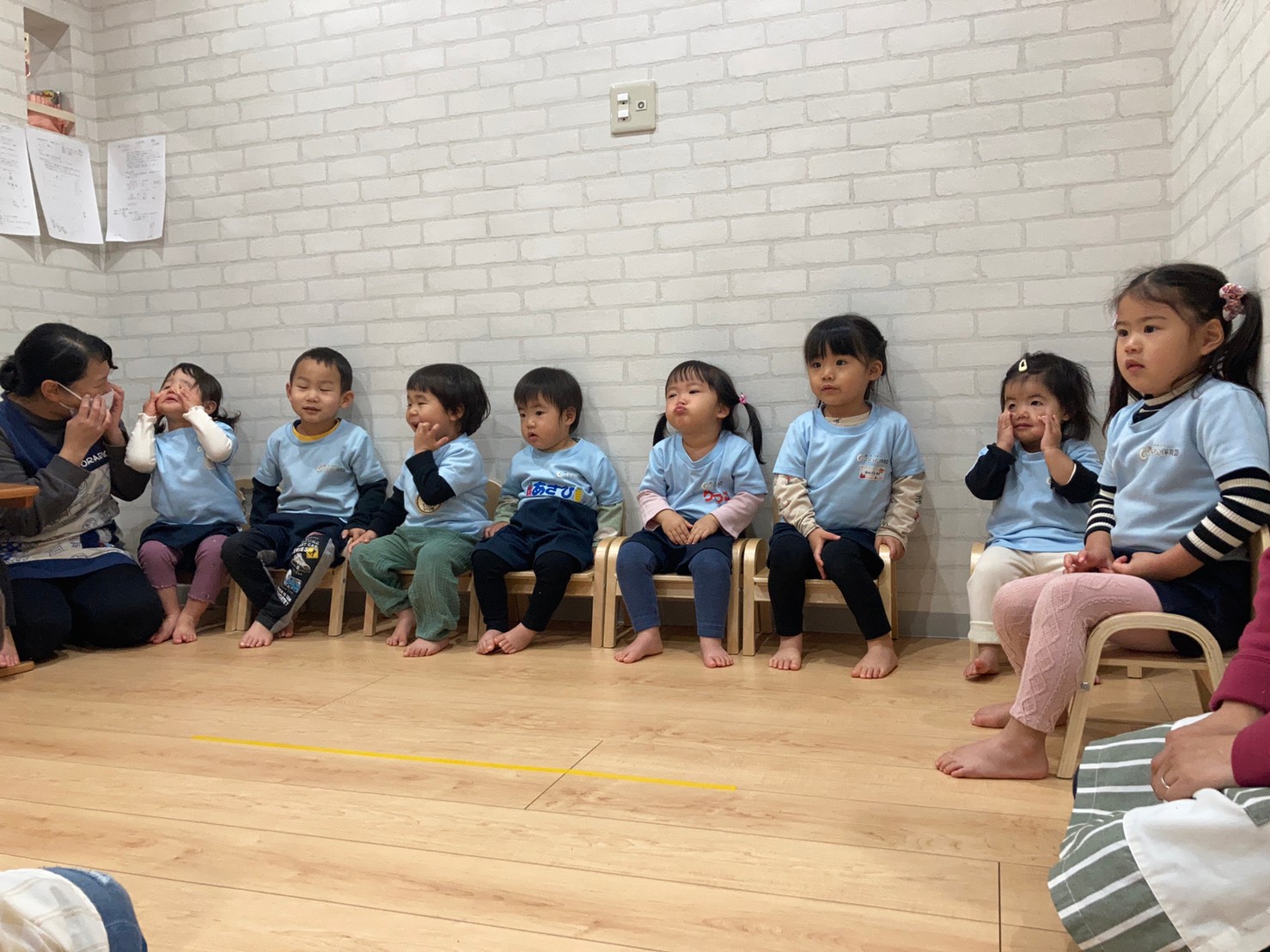 回を重ねるごとに流れを覚えて、返事やお辞儀の仕方も上手になった二歳児さん🥰