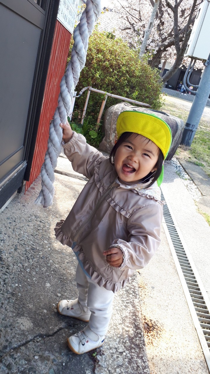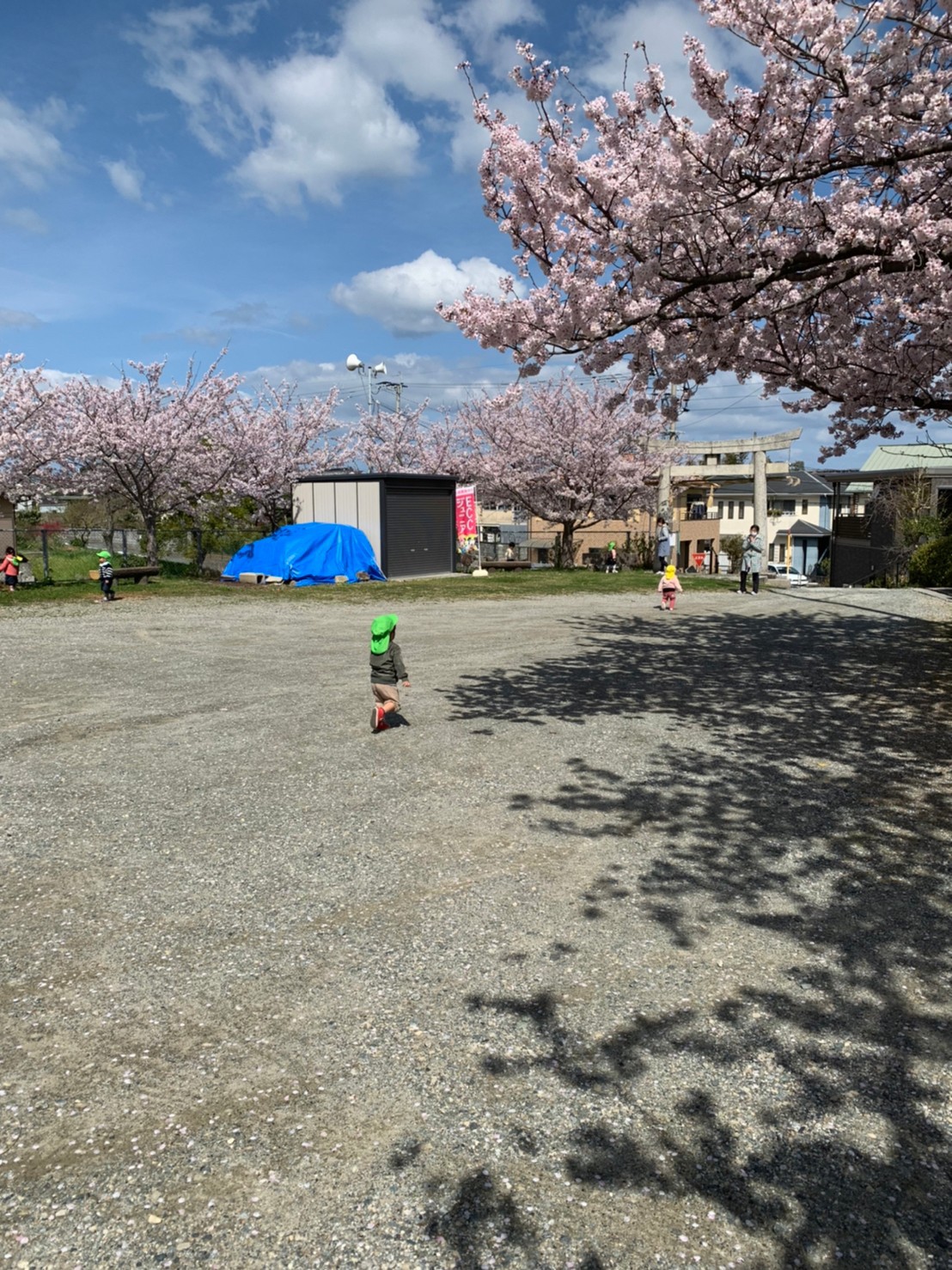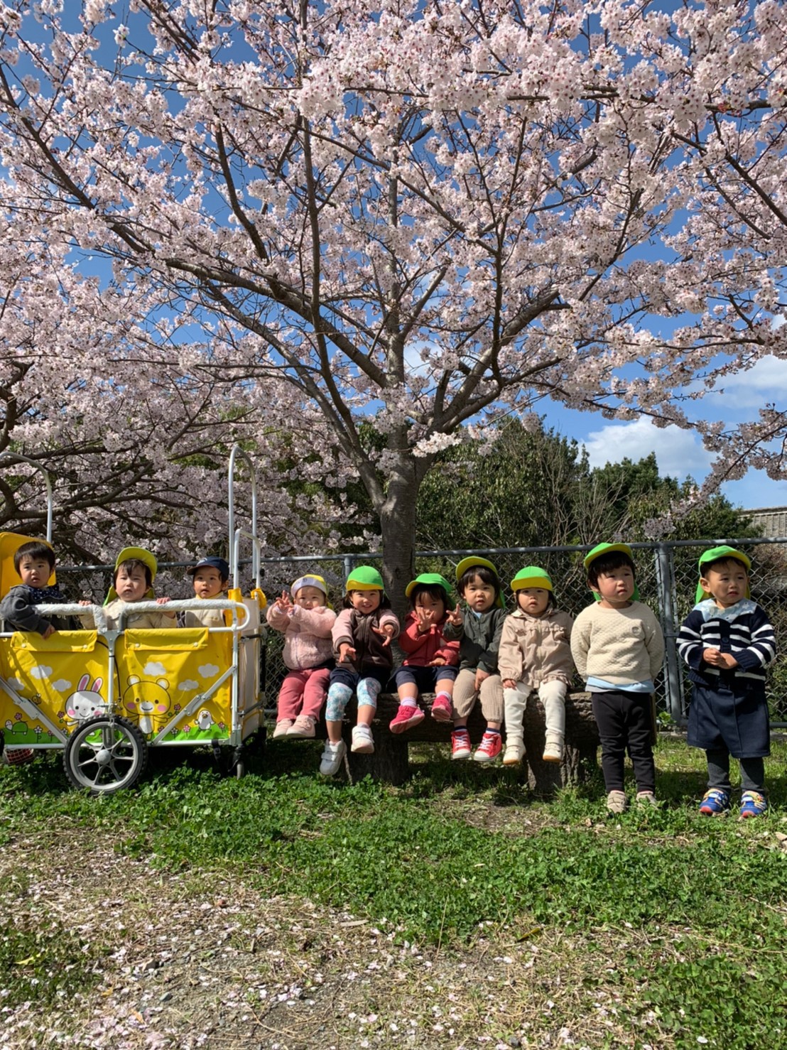 今日は近くの公民館に遊びにでかけて、満開の桜の木の下で記念撮影をしました🌸