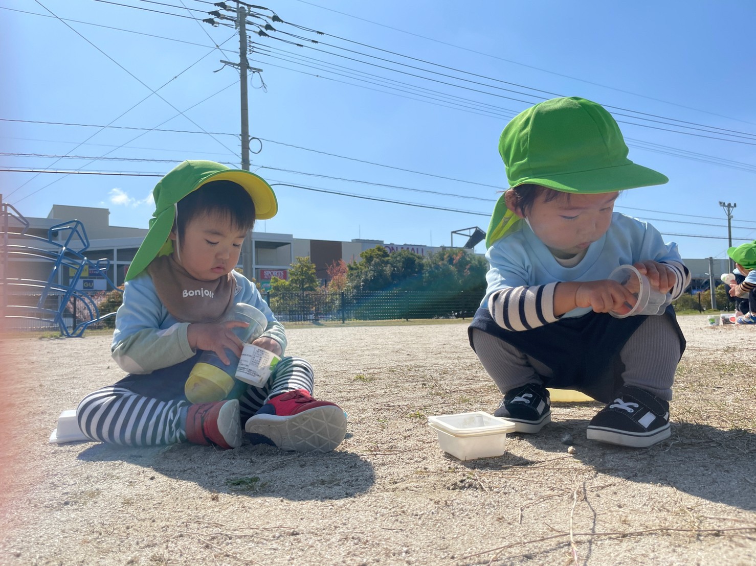 お花を見つけては、髪の毛につけて〜💓と持ってくるお友だちや蝶々を追いかけているお友だち🦋💕