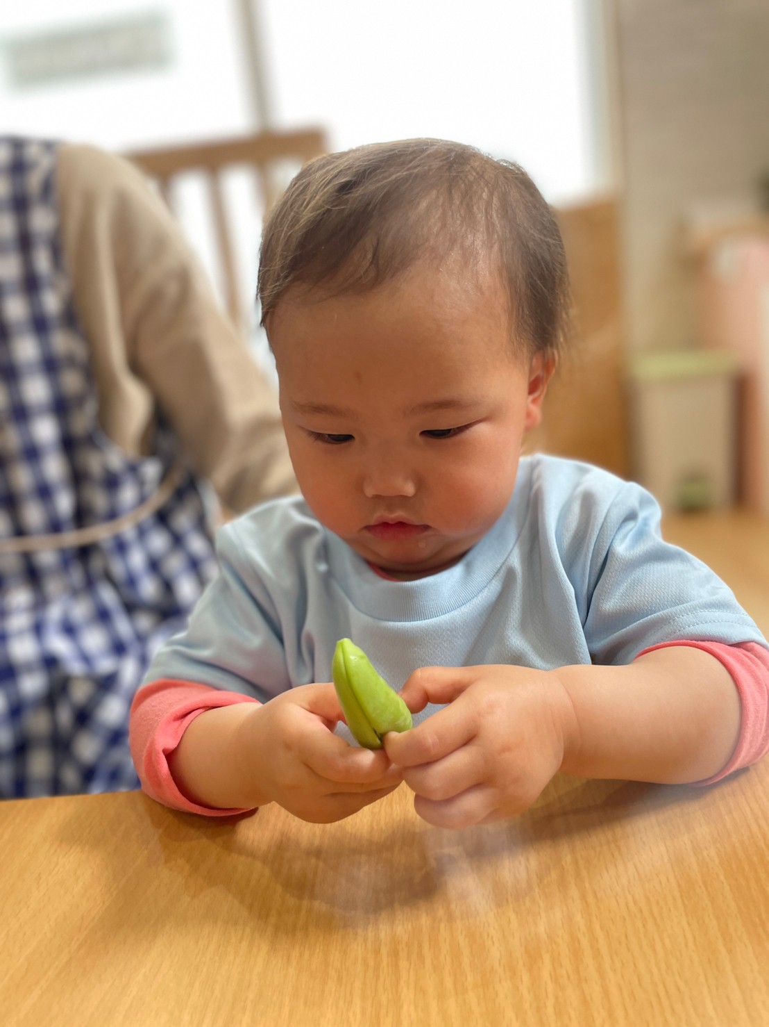 そら豆の皮は、ふかふかベットのようで、『ふわふわ➿🤩』とスナップえんどうの豆を入れてみたり🙌玉ねぎの匂いを嗅いでみたりと、楽しく参加しましたよ☺️