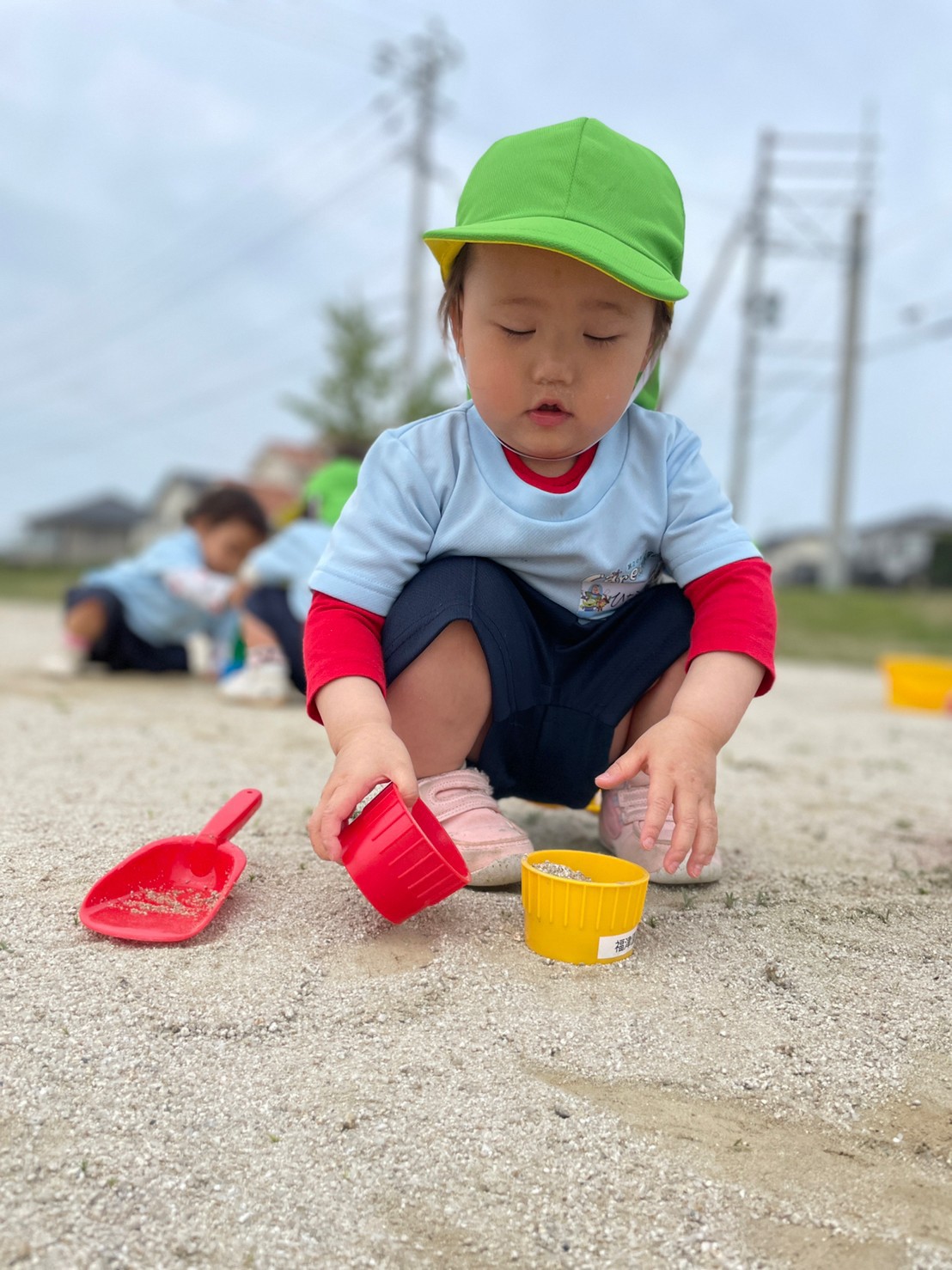 その後はむつき公園に行き、遊具を登り降りをしてみたり、スコップやバケツを持ち砂遊びを夢中で楽しんでいましたよ🥰💓