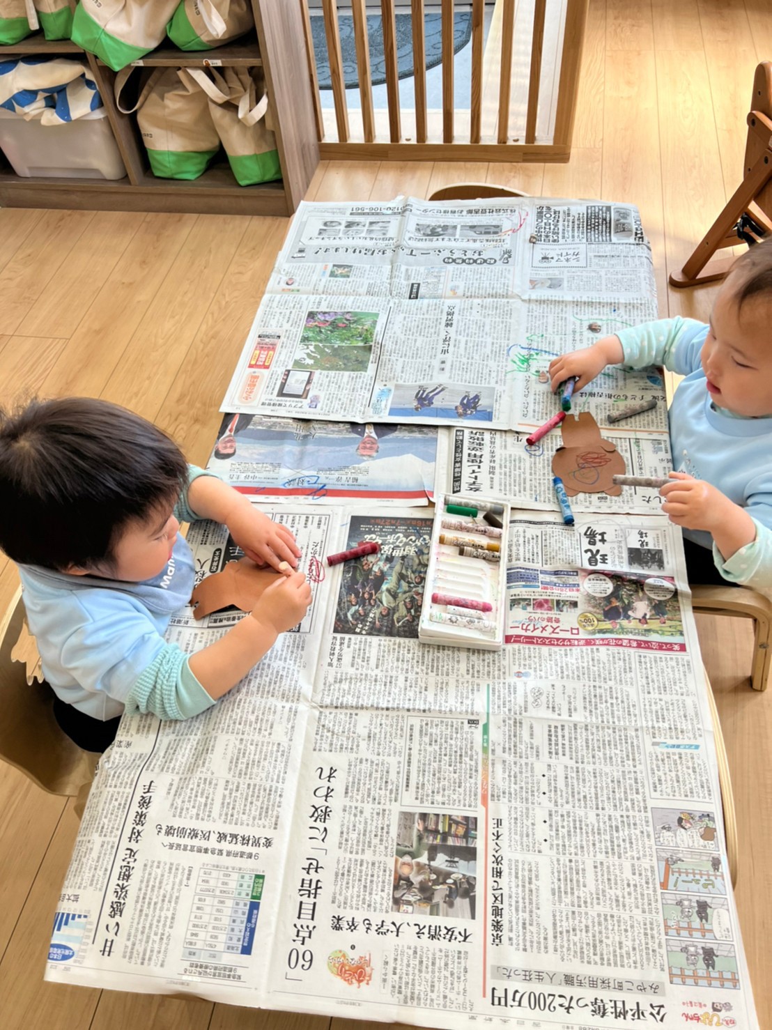 くまさんの顔をクレヨンで思い思いに描いたり、お友だちと大きなブロックを積み上げたり、今日もニコニコ笑顔がいっぱいでした😊💓