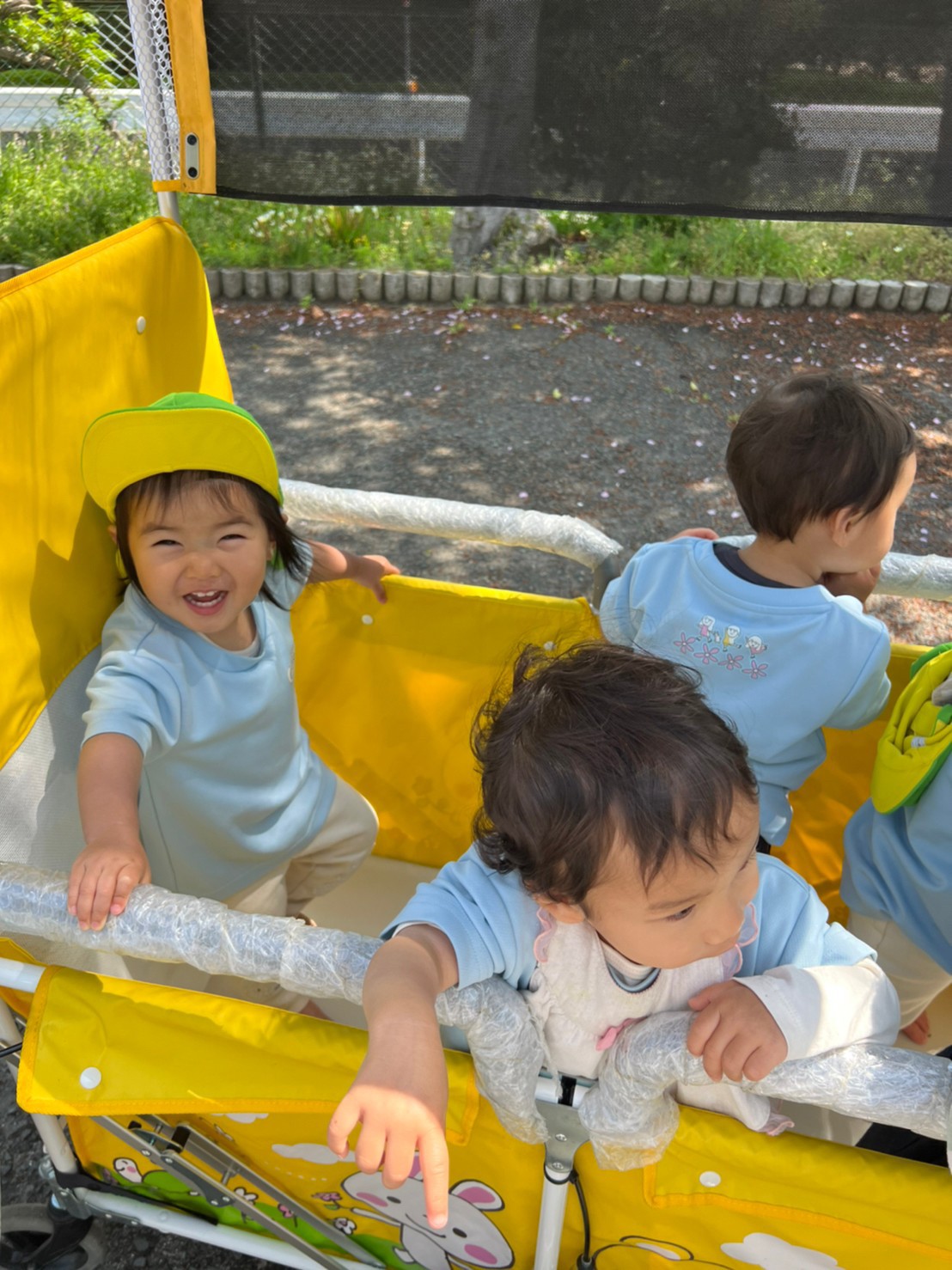 タンポポの綿毛を吹いたり、川を覗き込んだりしながら沢山歩いて着いた先には、鯉のぼりが元気良く泳いでいました🎏✨✨