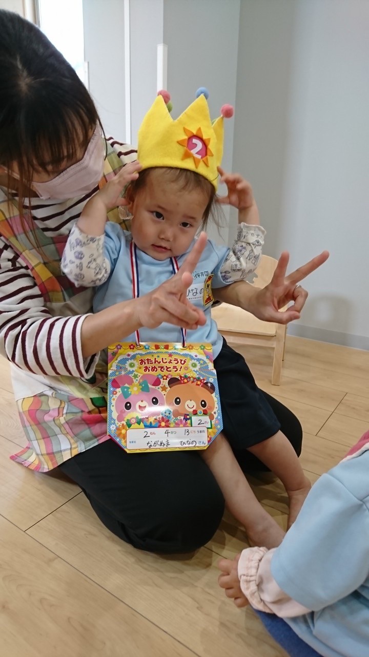 誕生日のお友だちも笑顔でとても喜んでいました🥰出し物のクレヨンのペープサートでは身体を揺らしたりして楽しんでいました🎀