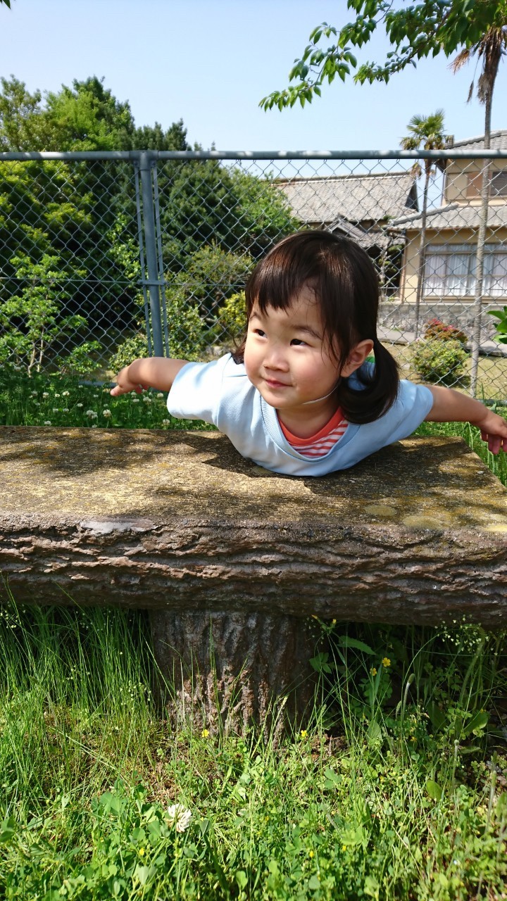 先生と手を繋いで近所の公民館に遊びに行きましたよ☀️