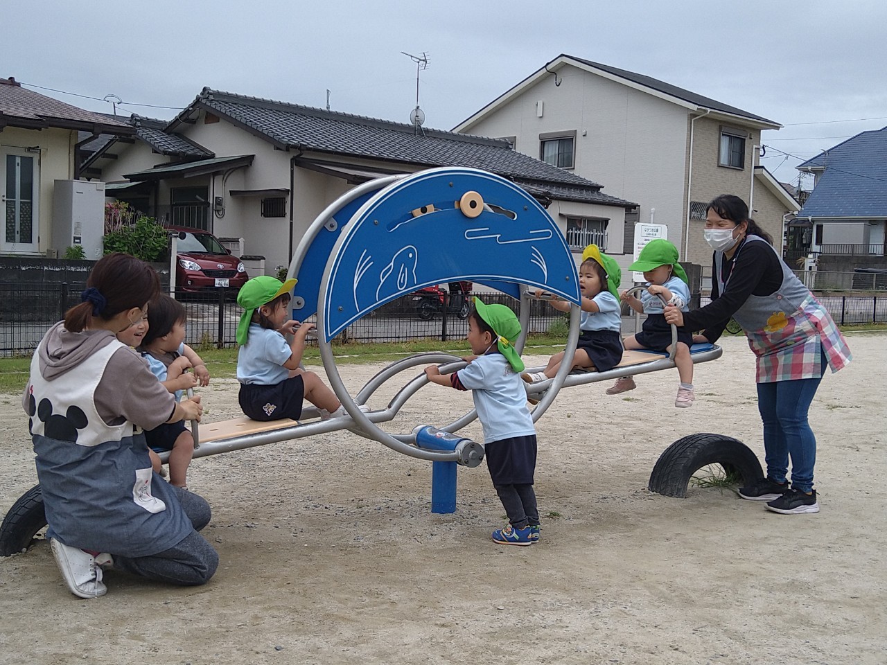公園に着くと、シーソーに乗りみんな楽しんでいました🥰散策を楽しみ木のみを見つけて保育者に見せてくれましたよ🤣💕