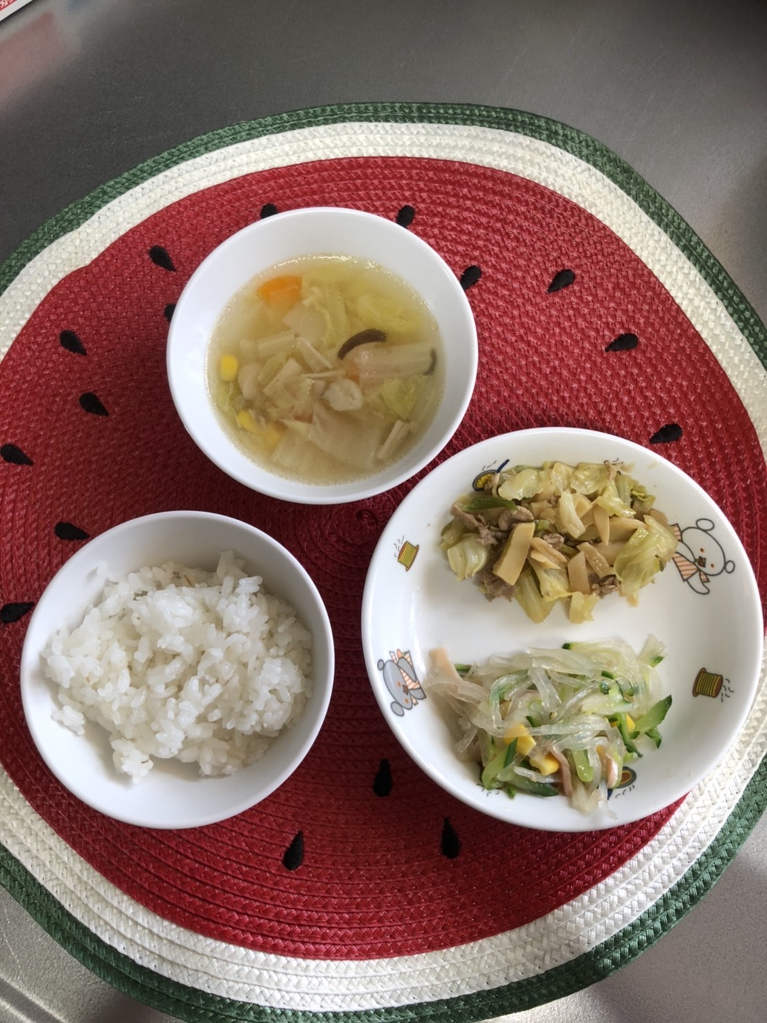 室内でも身体を沢山動かして元気いっぱい過ごしています😌【ふくつ園の今日の給食です】