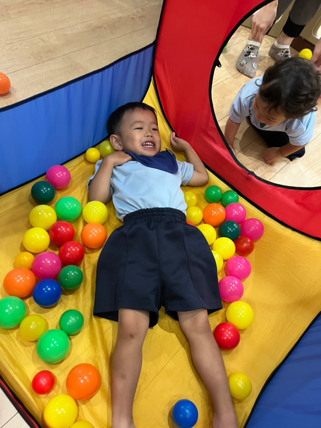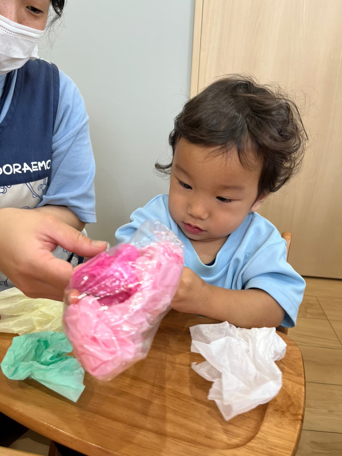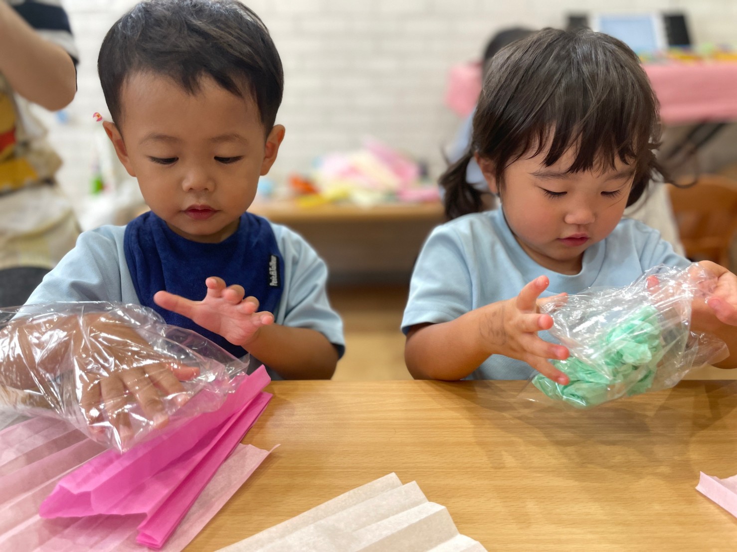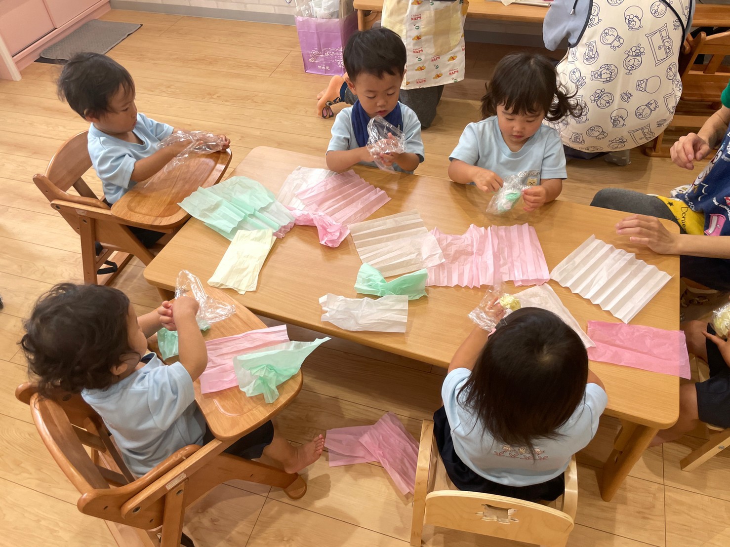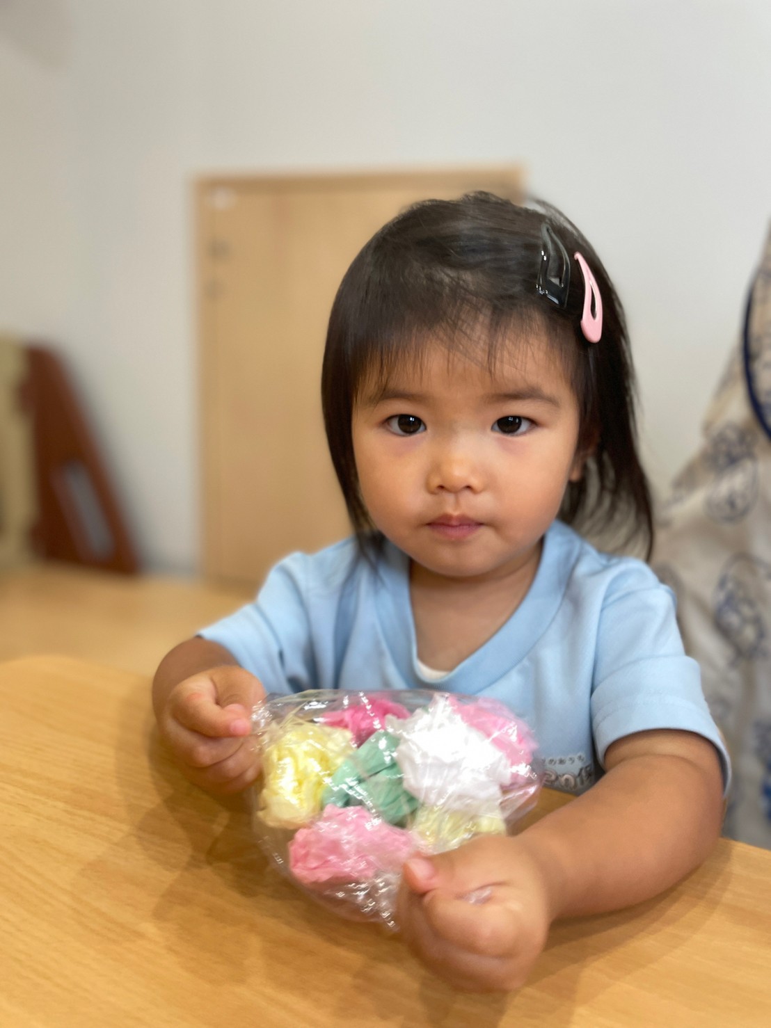 くしゃくしゃ上手に丸める子やギュッとひと握りする子など様々でしたが、楽しみながら行いました🥰