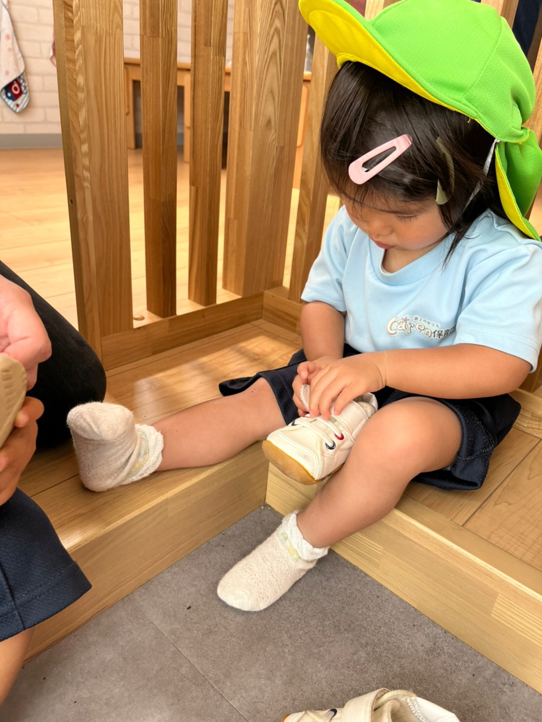 靴や靴下を自分で最後まで難しいけれど、『自分でやってみよう!』と一生懸命チャレンジする姿がとってもカッコいい福津園の子ども達です😊(靴)👏