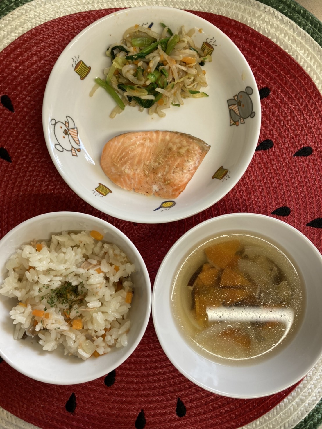 来週は、梅雨本番☔️お部屋でなにして遊ぼうかな☺️【ふくつ園の今日の給食です】