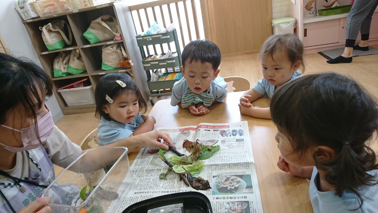動いているのをじーっと見たり、手でカタツムリを作って、「でんでんむしむしカタツムリ〜🐌」と歌うお友達や、話しかけるお友達も居て