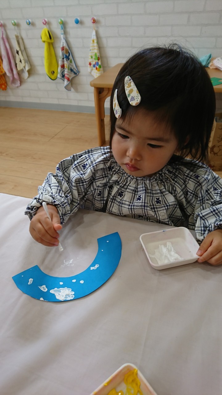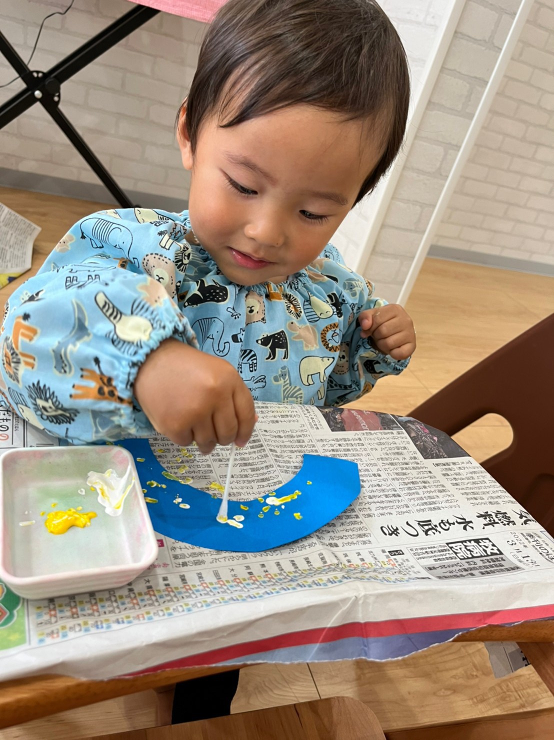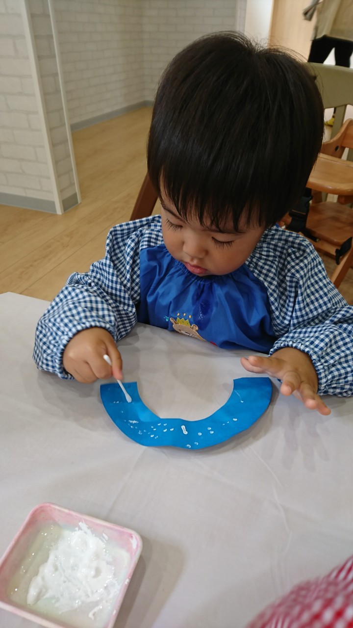綿棒に絵の具をつけて『てんてんてん…』とするお友だちや筆のように塗り塗りするお友だち🎨