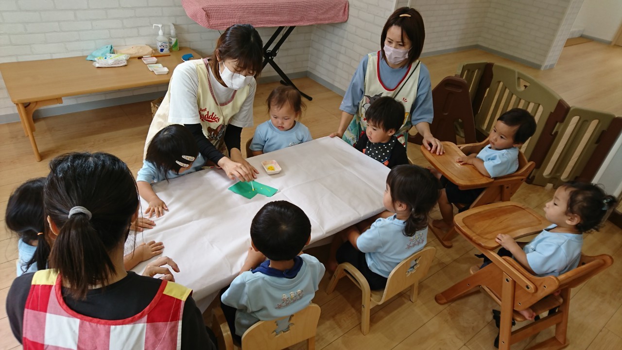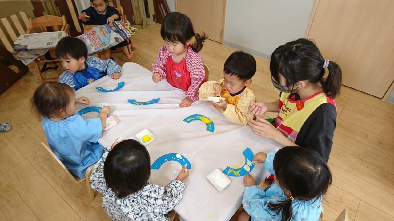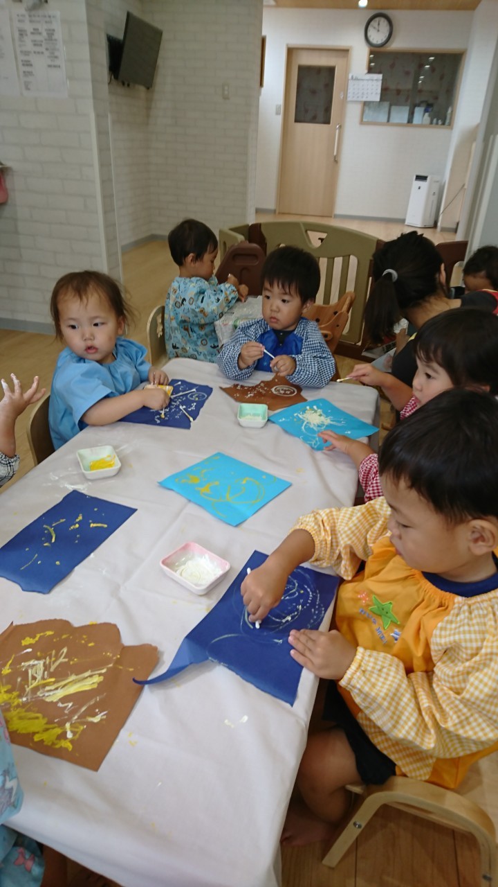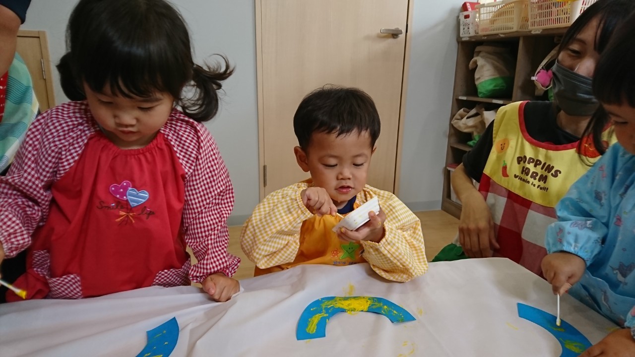 綿棒に絵の具をつけて『てんてんてん…』とするお友だちや筆のように塗り塗りするお友だち🎨