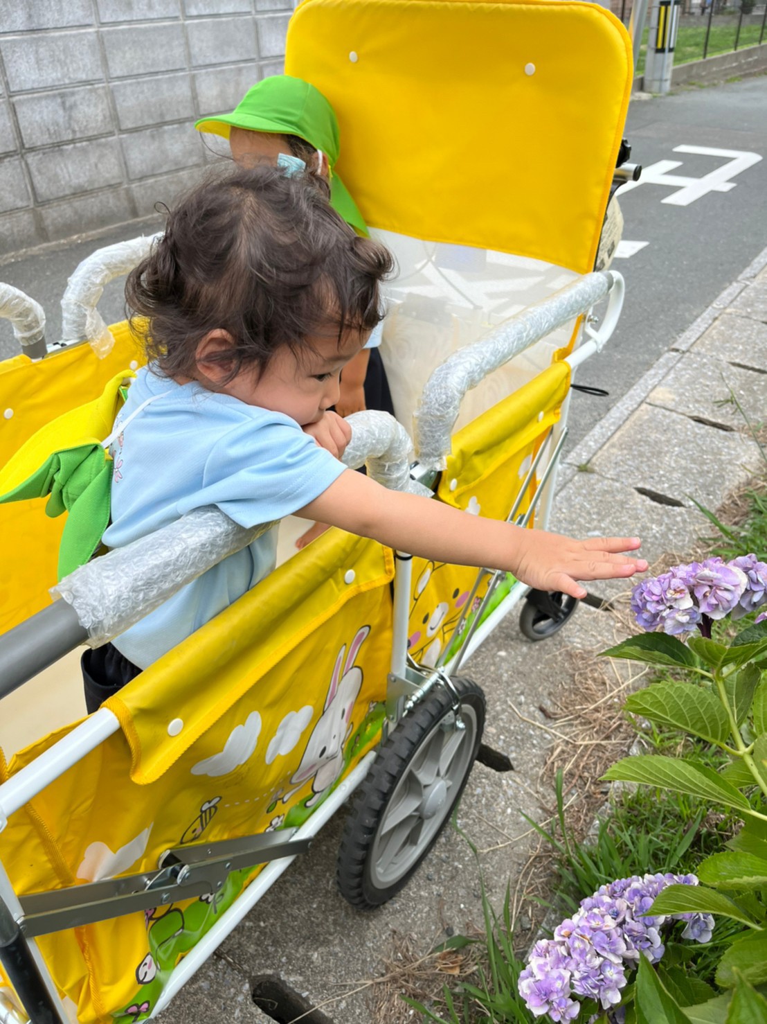 いつもと違う道を通り、どこに行くのかな…と不思議そうなお友だち🤗紫陽花や木の実を見つけて四季を感じてすごしました🌻【ふくつ園の今日の給食です】