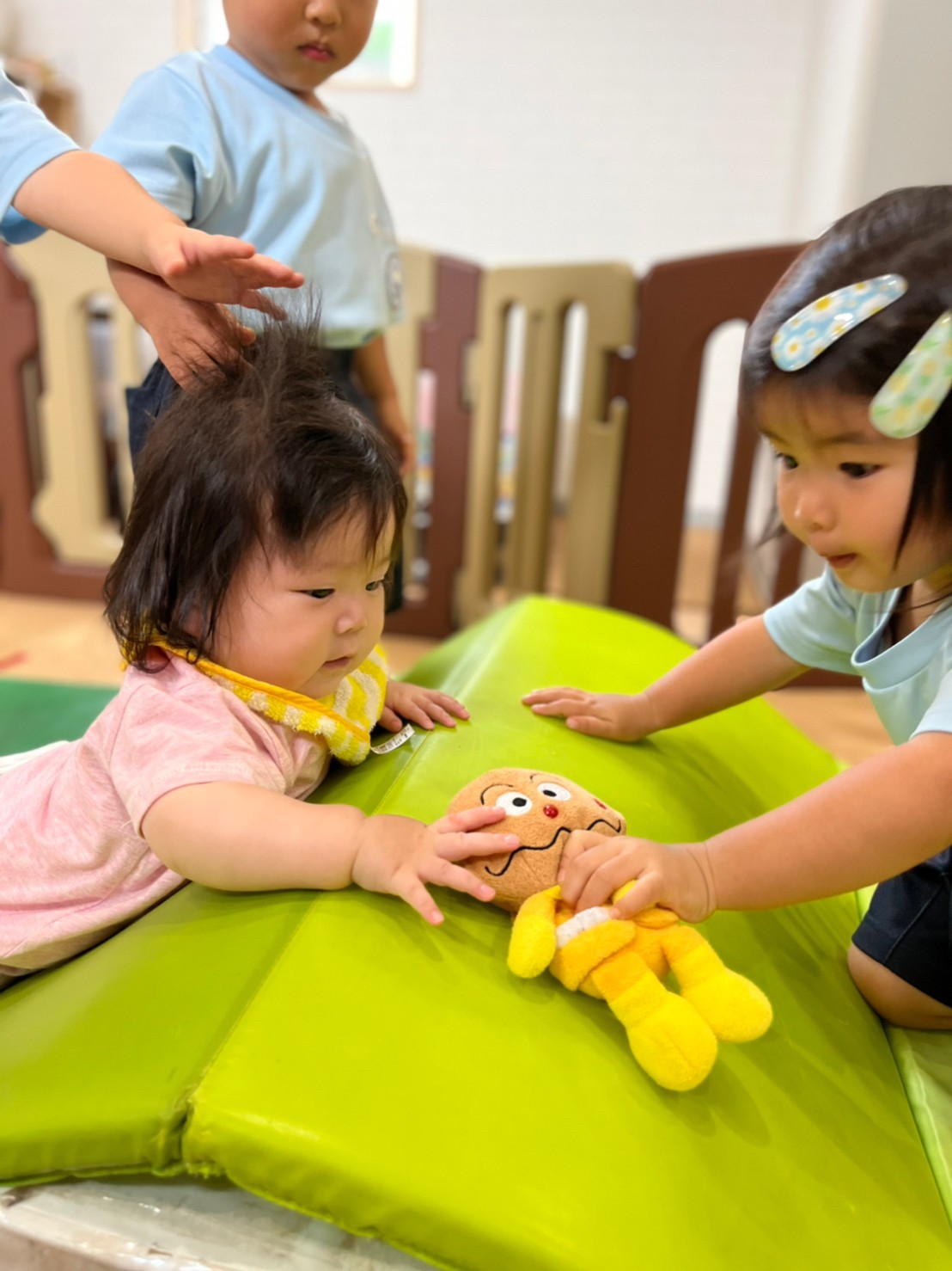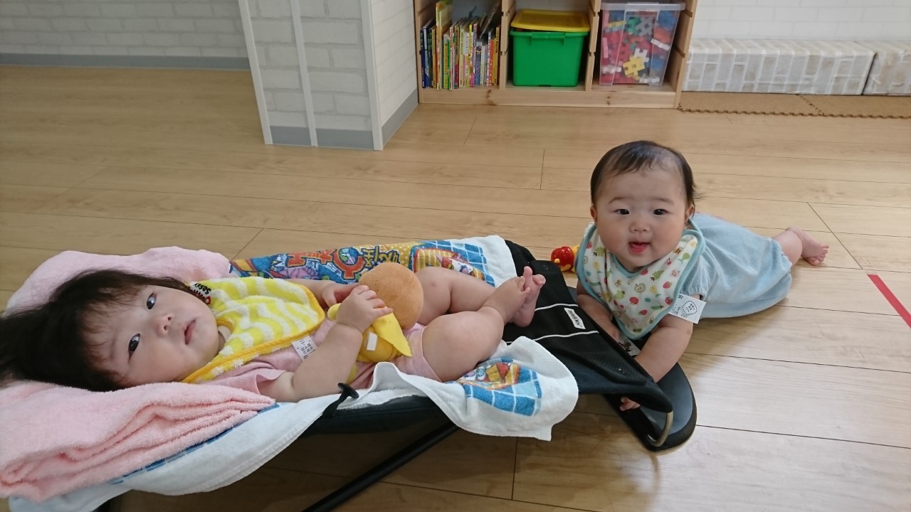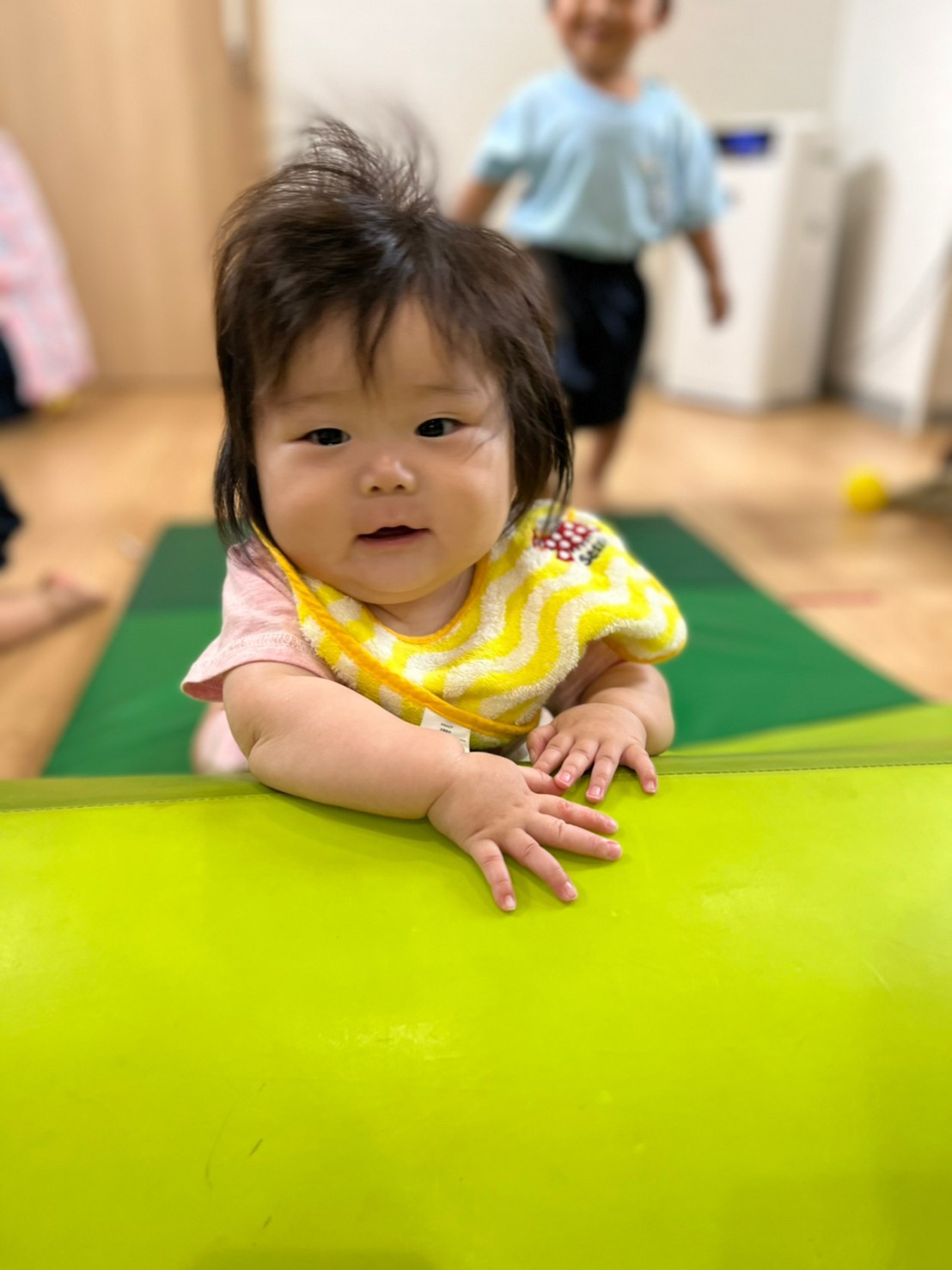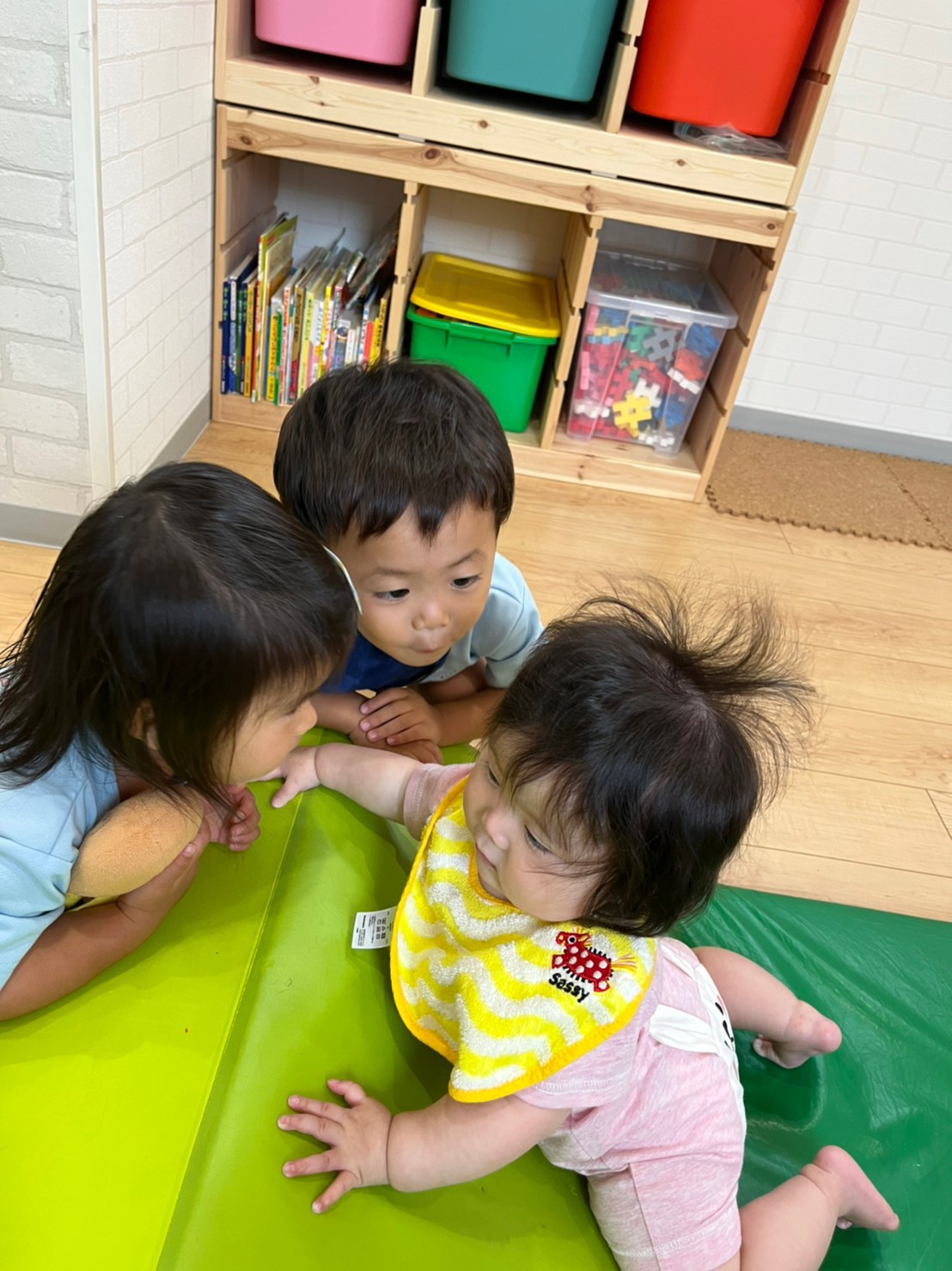 0歳児のお友達も一緒にマットの上でゴロンと横になったり、ずり這いでお友だちのそばに移動してみたり…仲良くみんなで過ごしました💕