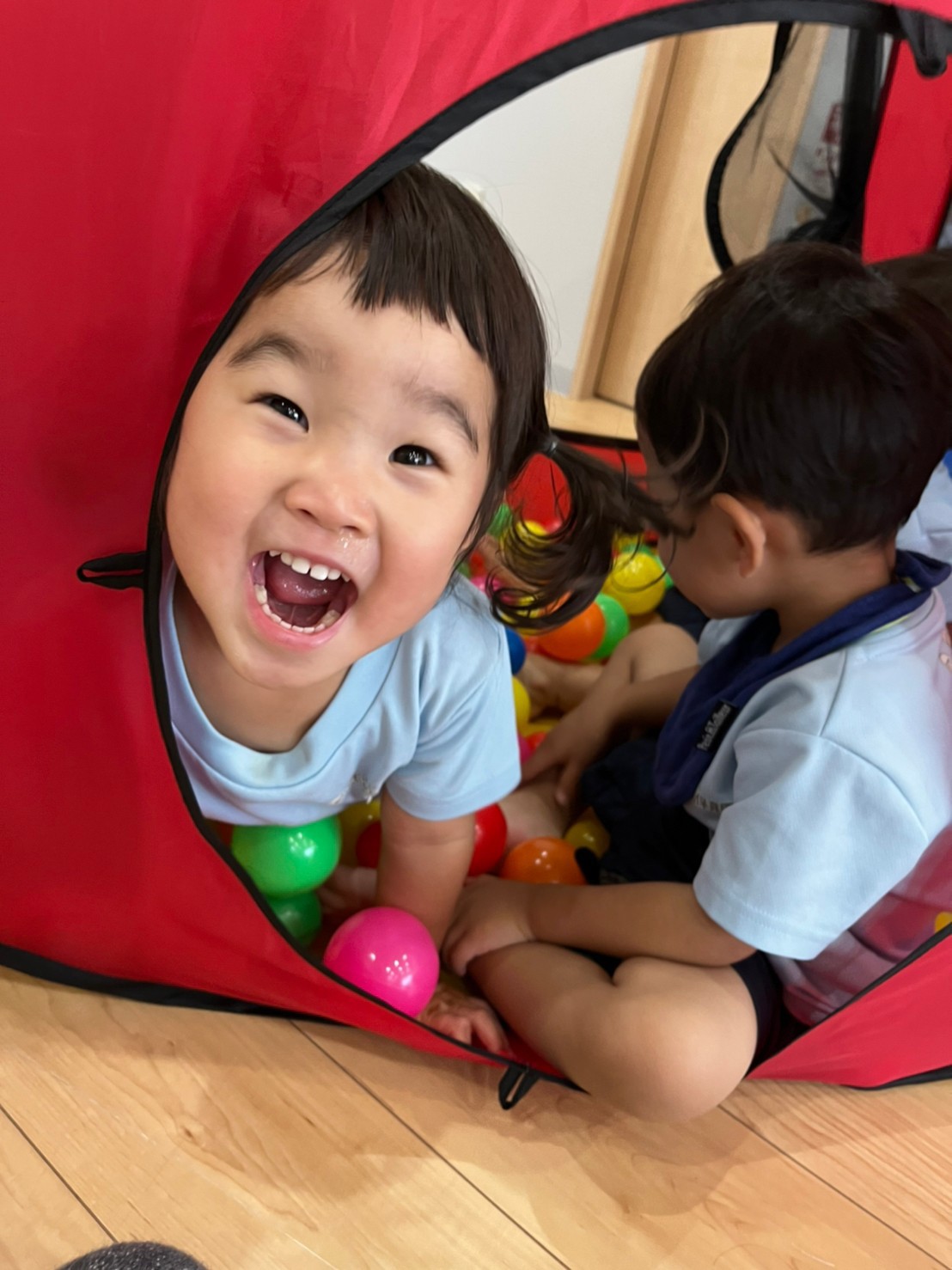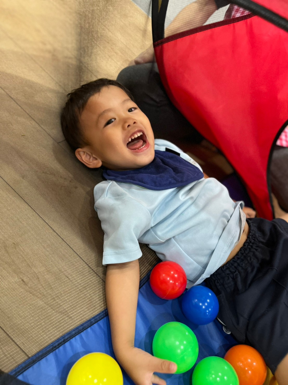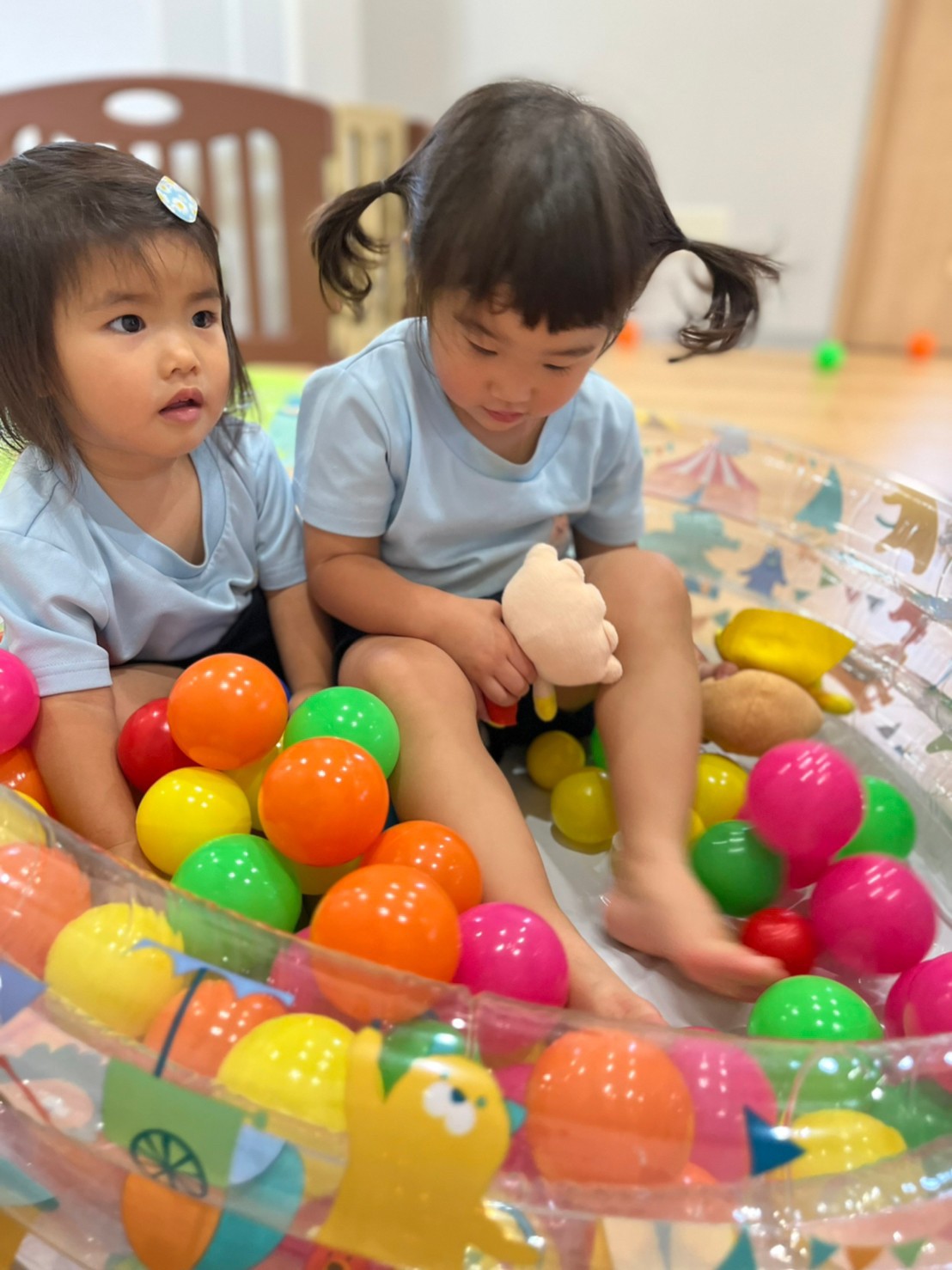 そのあとは、ボールプールやマットで元気いっぱいに身体を動かして遊びました(ボール)