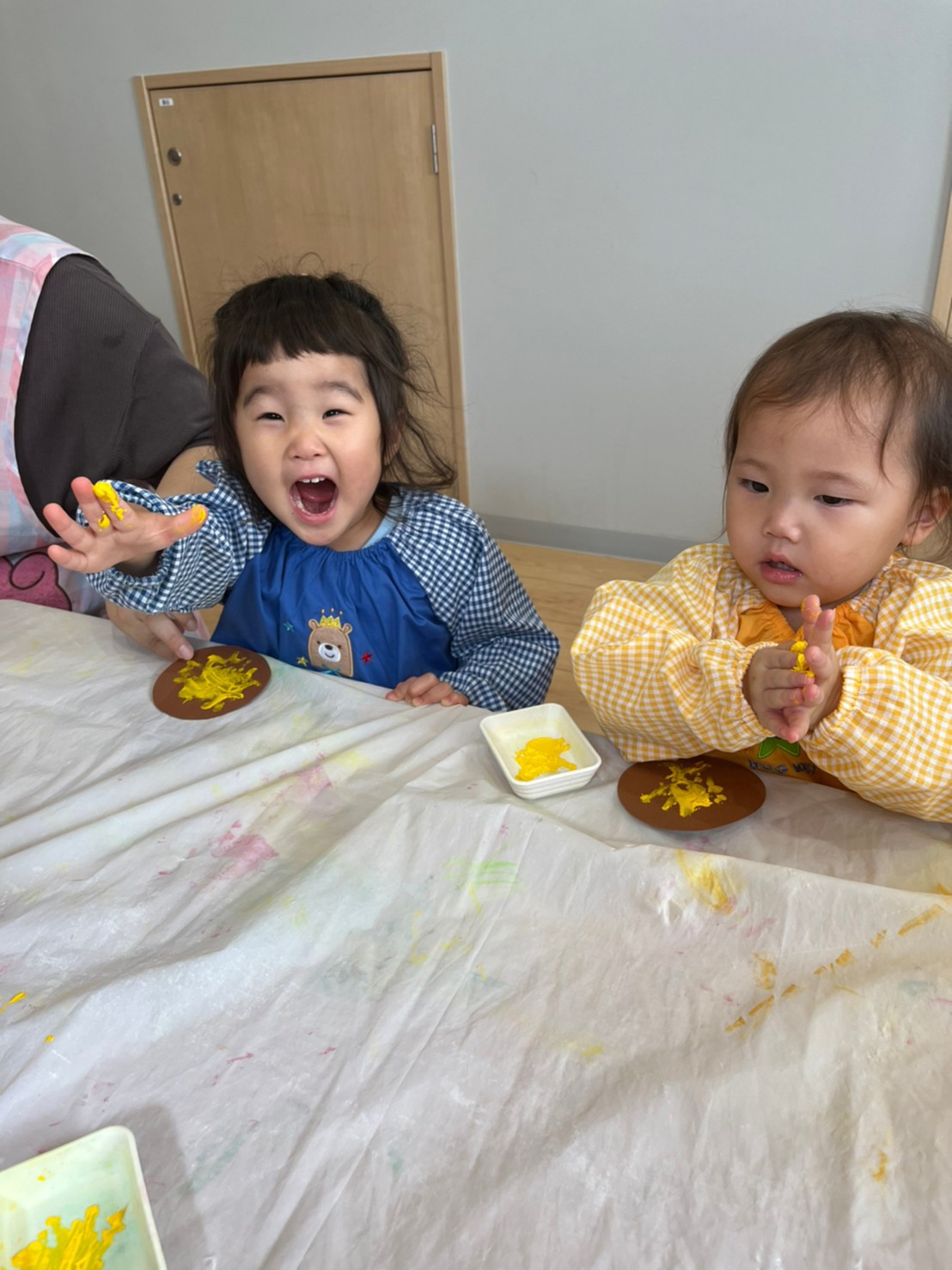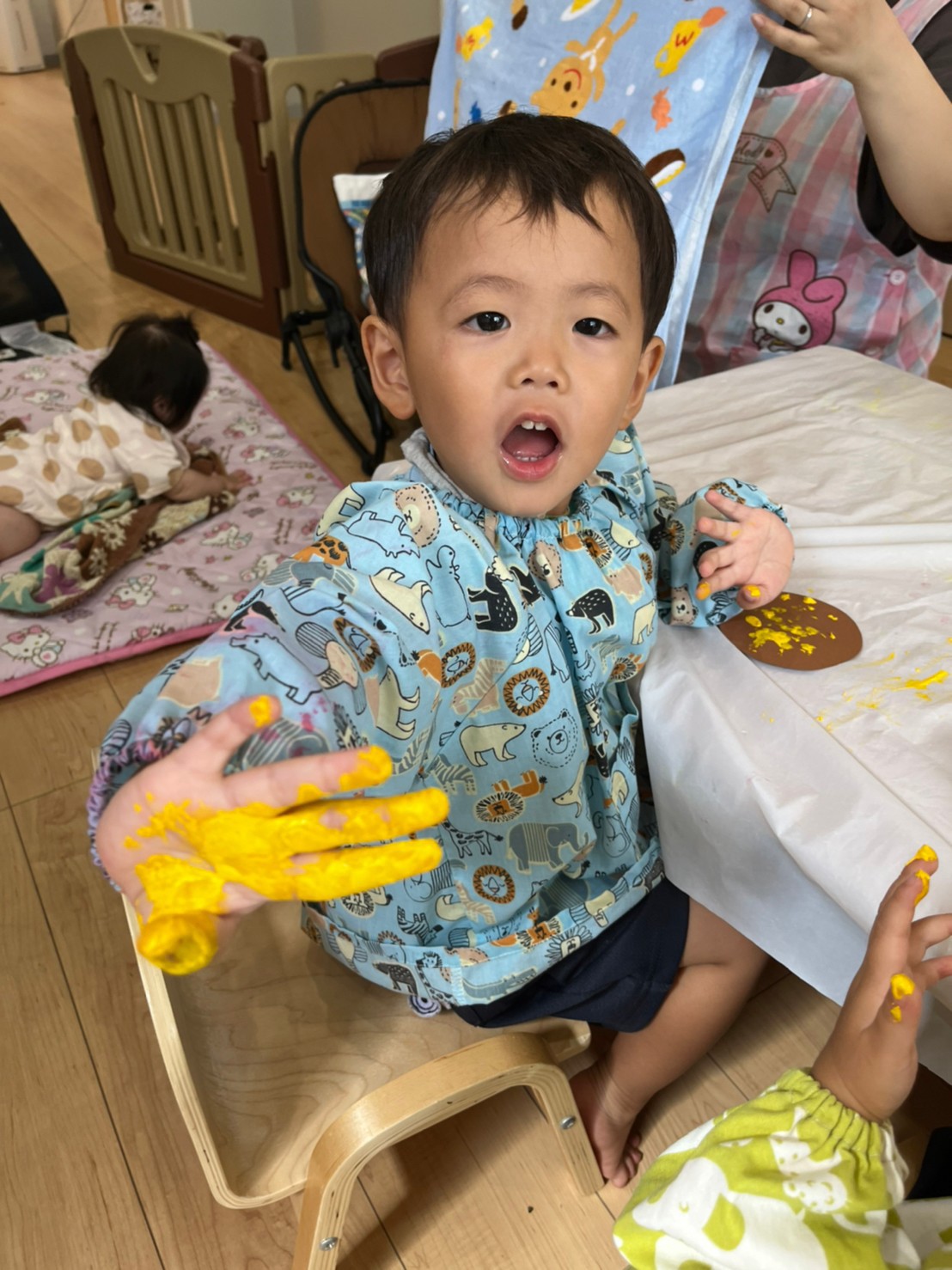 絵の具が出てくると、嬉しそうな子どもたち🎵今から始まる活動にみんなわくわく😆