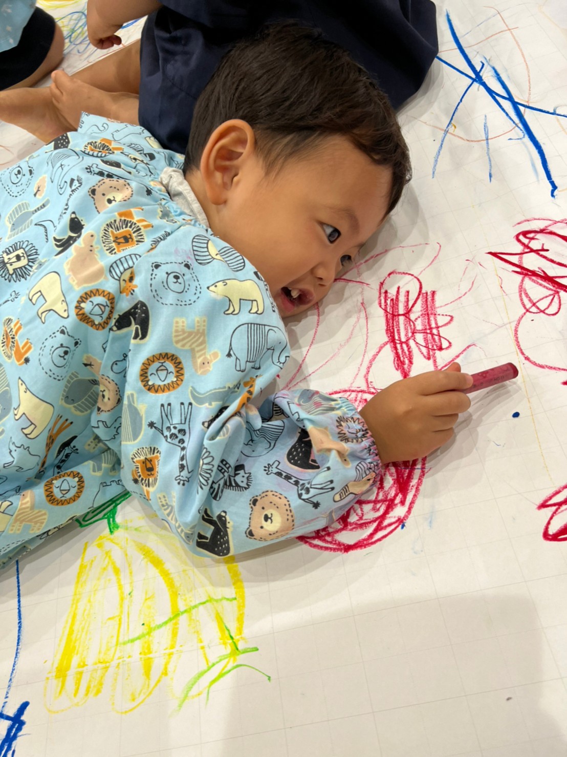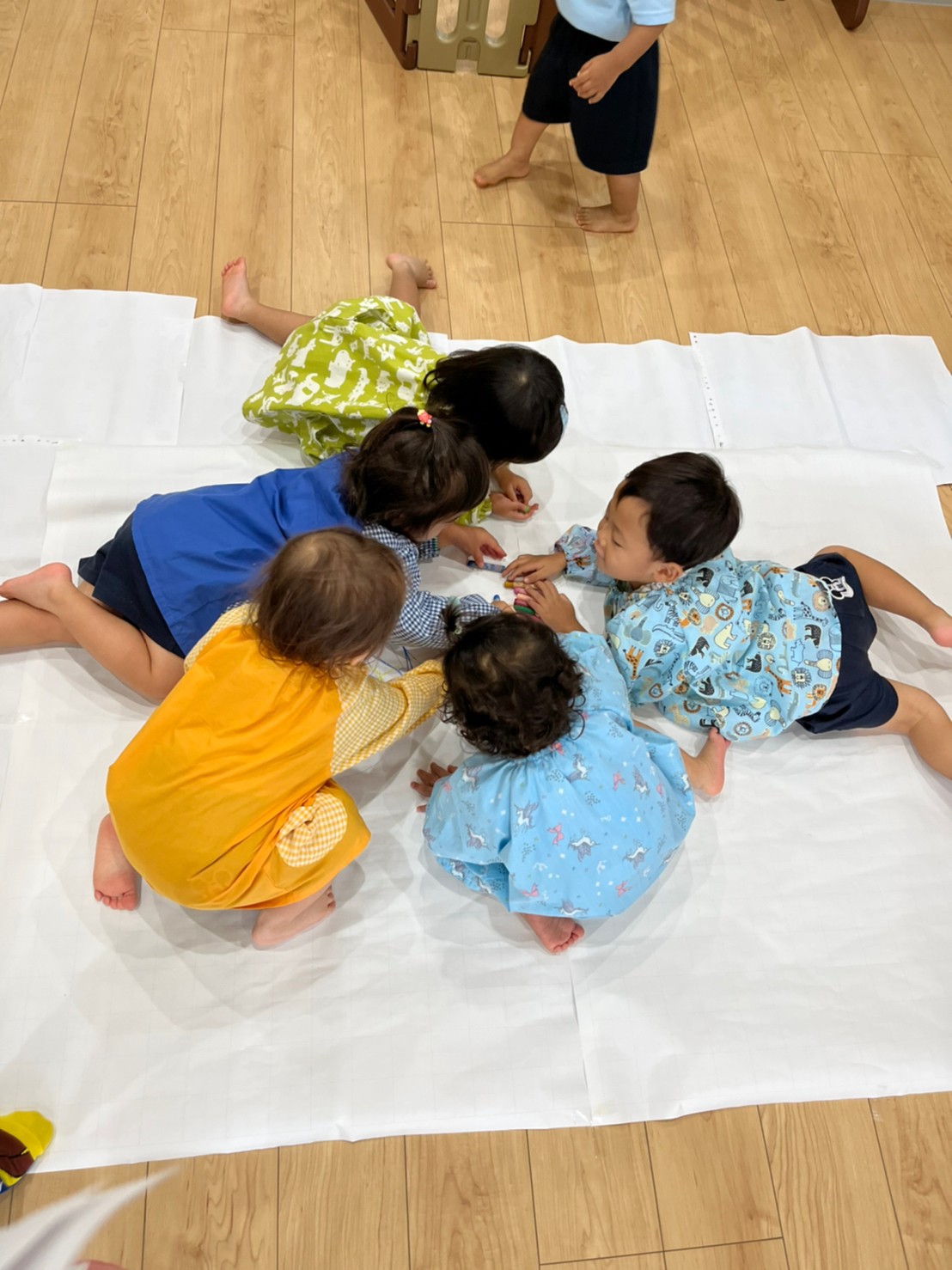 その後は床に大きな模造紙を敷いてお絵描きをしました✨先生にミッキーマウスを書いてもらって、とっても嬉しそうな子どもたち💓