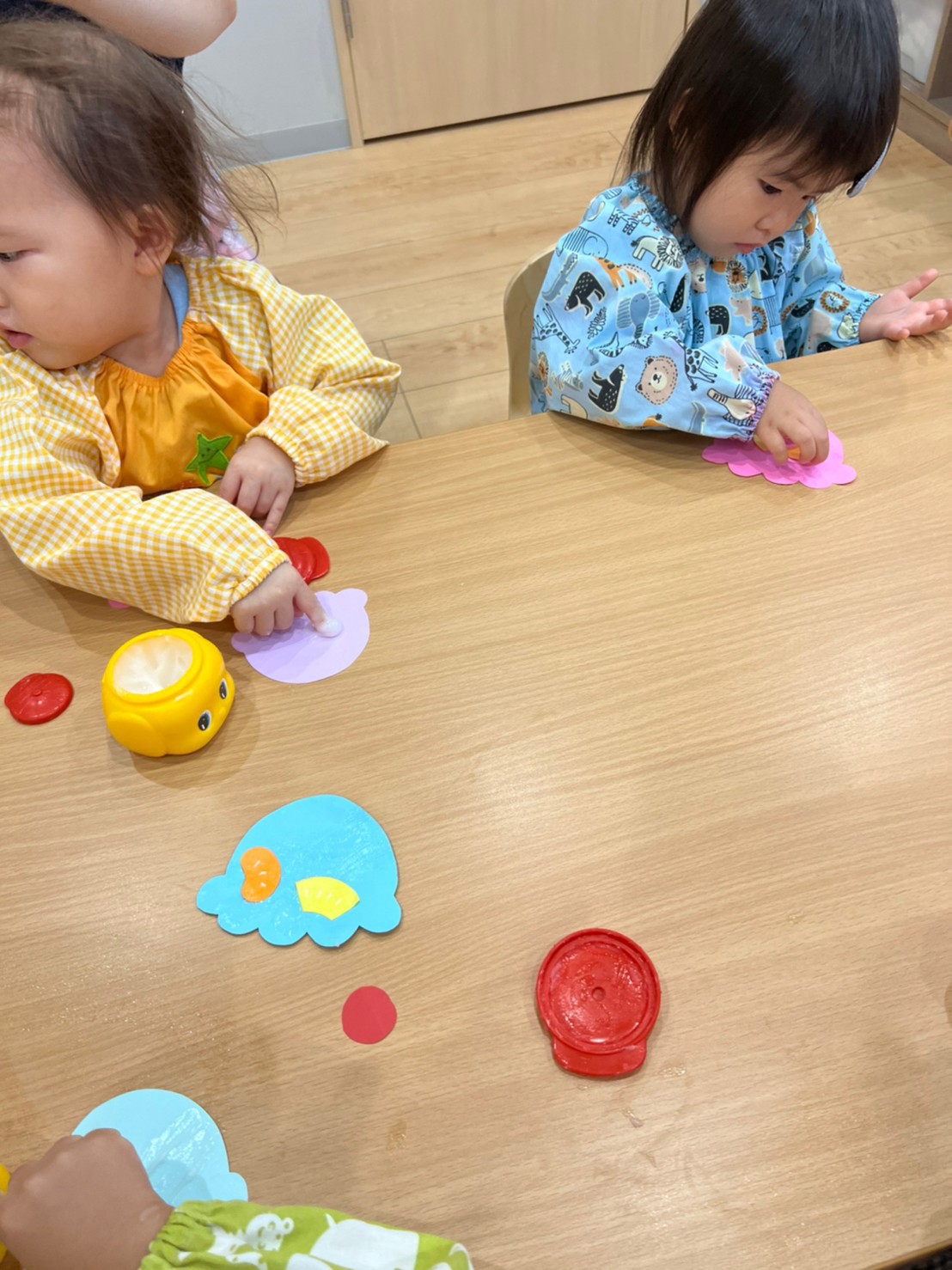 みんなの可愛いアイスが沢山出来ましたよ❤️その後は、ままごとで遊ぶ子、電車で遊ぶ子と分かれて自由遊びを楽しみました🫡☘️