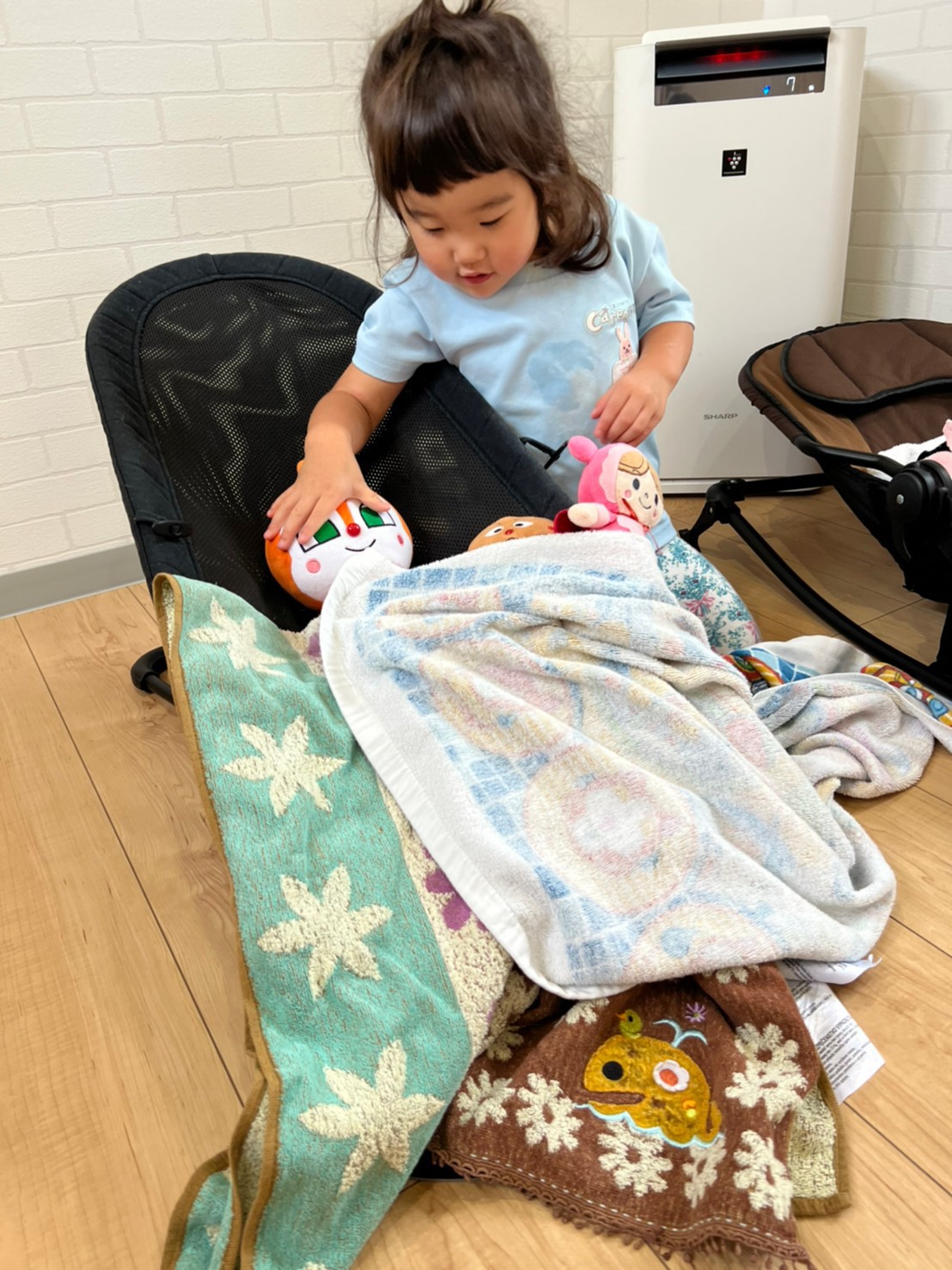 「ねんねよ〜😴」と声をかけながらトントンしてあげるお友だちもいましたよ🤣