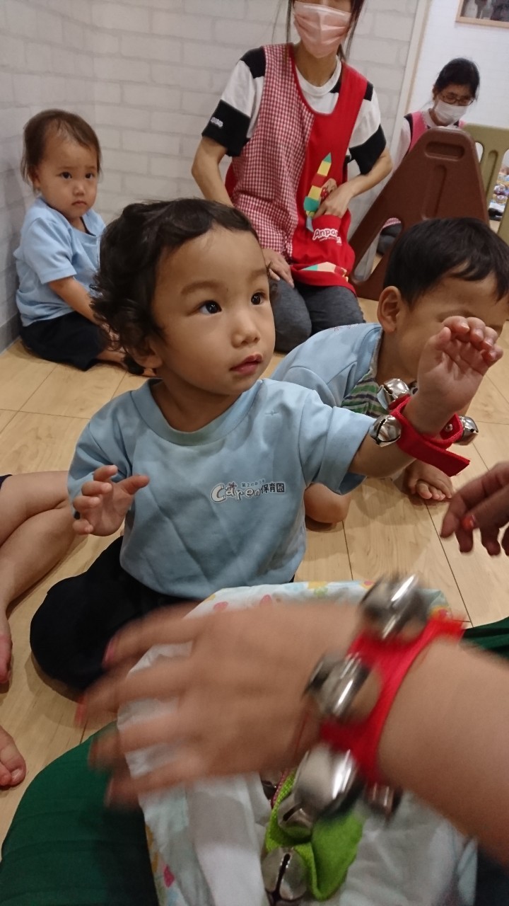 手遊び歌では鈴を鳴らして元気いっぱい🧡