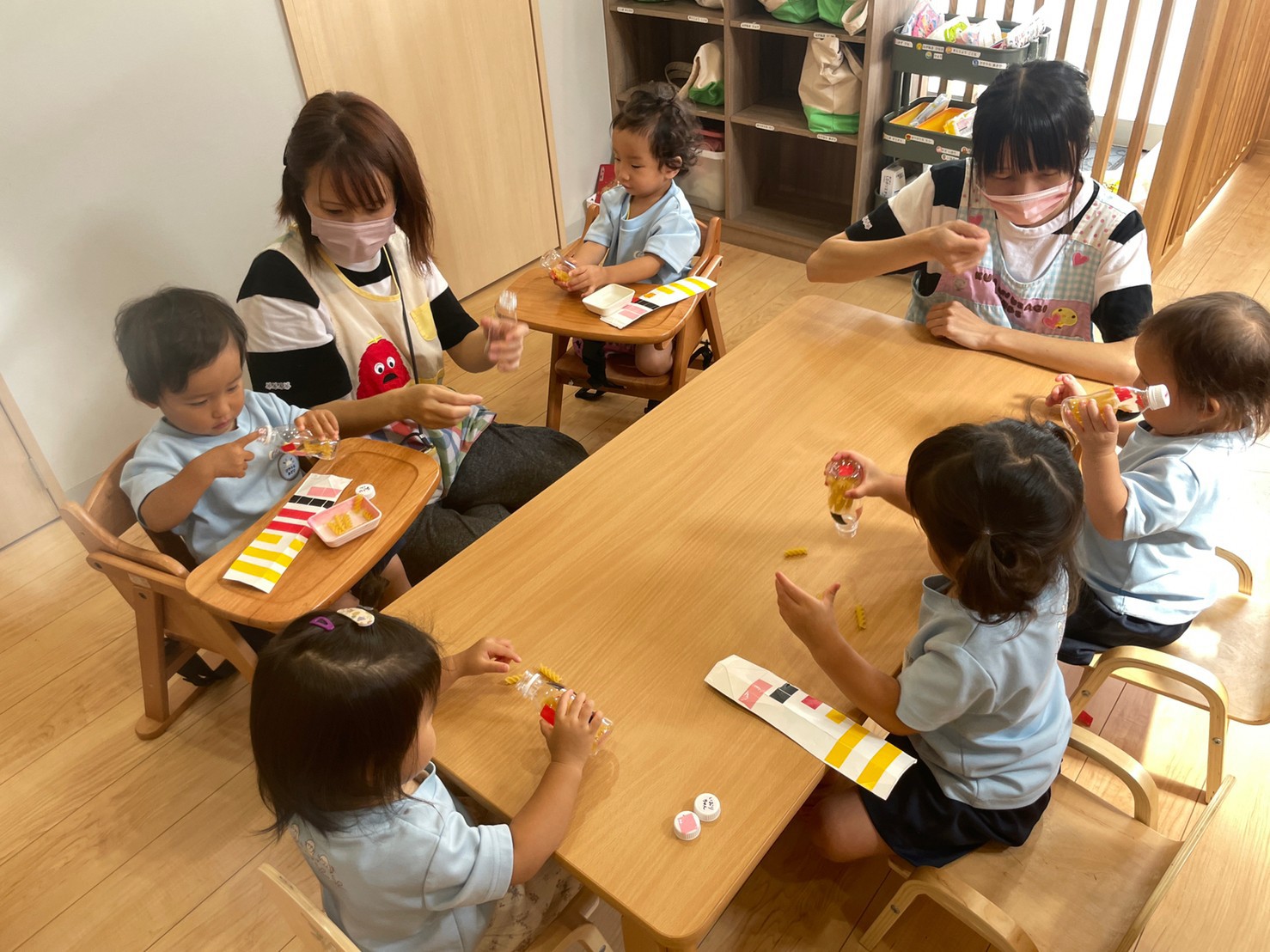 みんな上手にペタペタ貼って、マカロニがポトンと下に落ちる感触を楽しみながら完成させていました😊